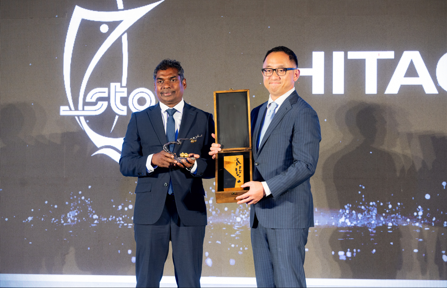Hitachi MD (left) at the celebration of 25 years of STO and Hitachi's partnership held at Barceló Nasandhura last night -- Photo: Nishan Ali | Mihaaru