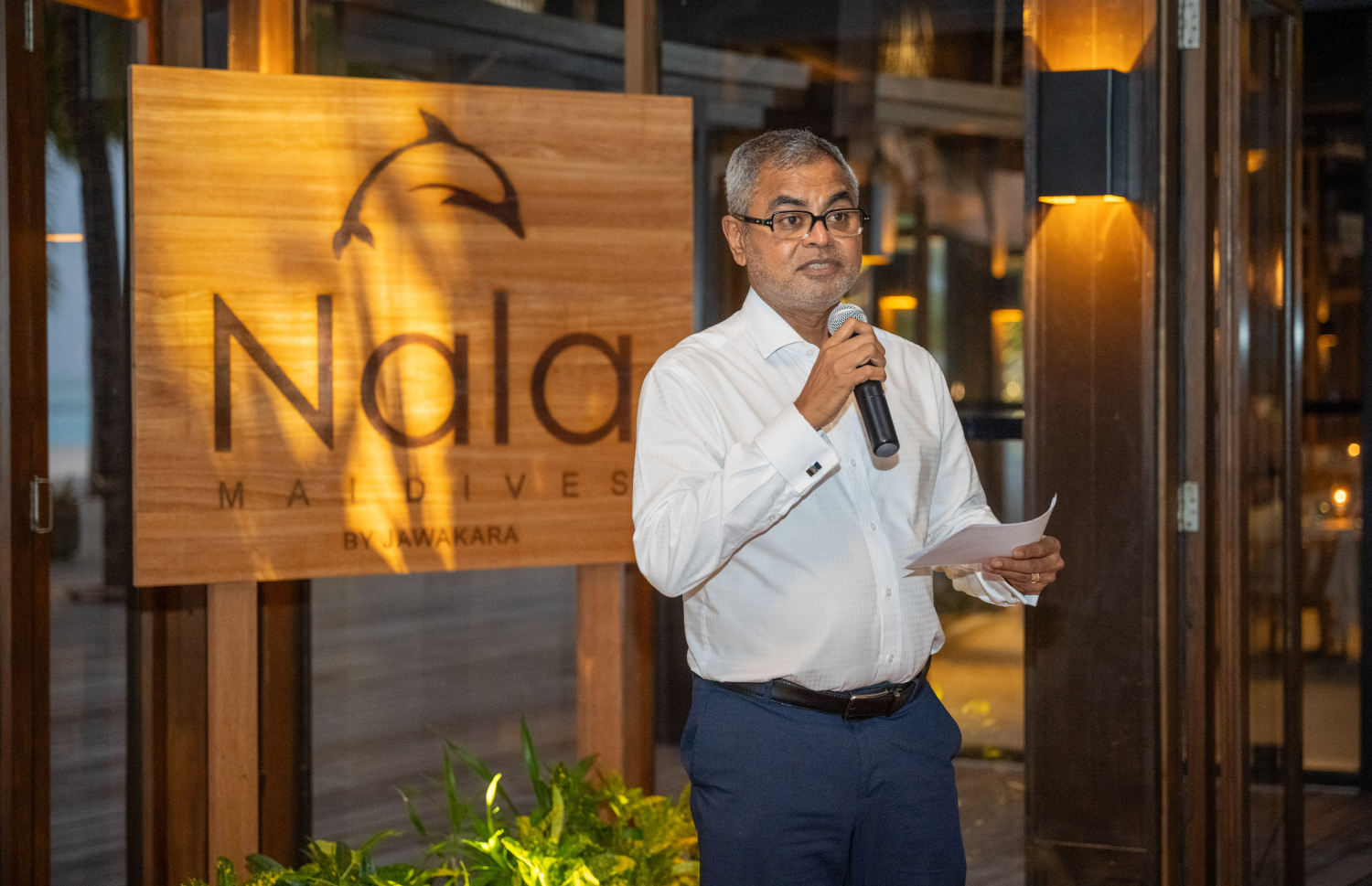 Crown and Champa Resorts CEO Mohamed Solah speaking at the opening ceremony of "Nala Maldives" -- Photo: Nishan Ali | Mihaaru