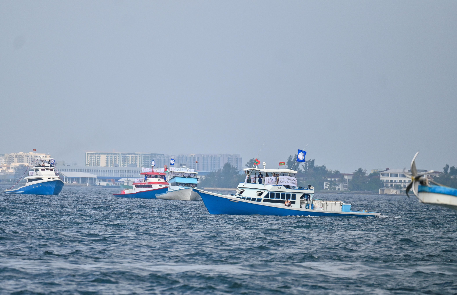 Marine vessels of protesting Yellowfin Tuna fishermen outside Male' -- Photo: Fayaz Moosa | Mihaaru
