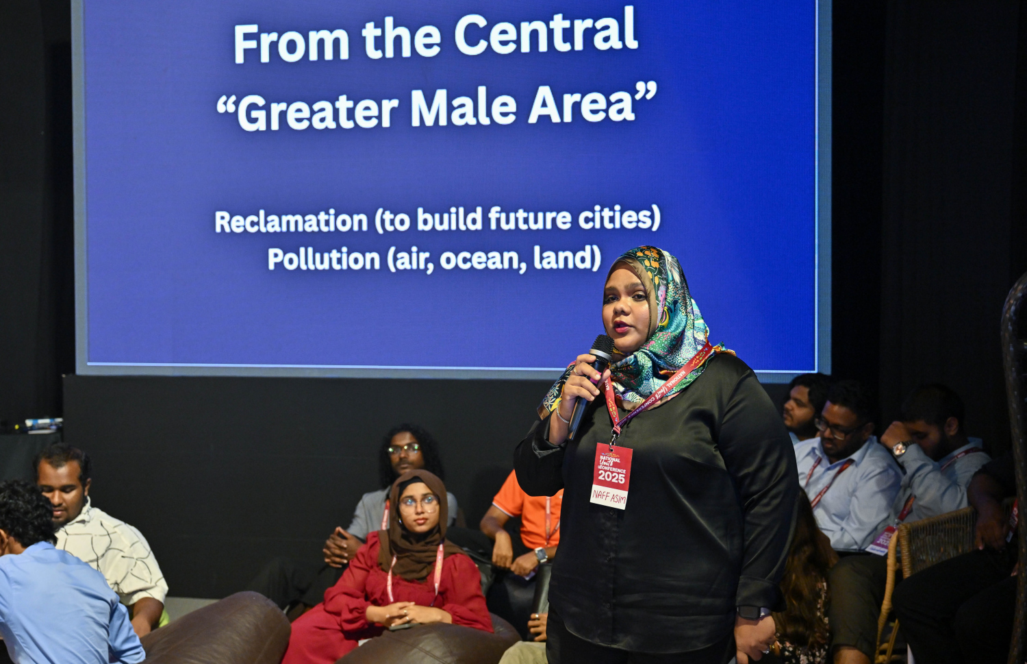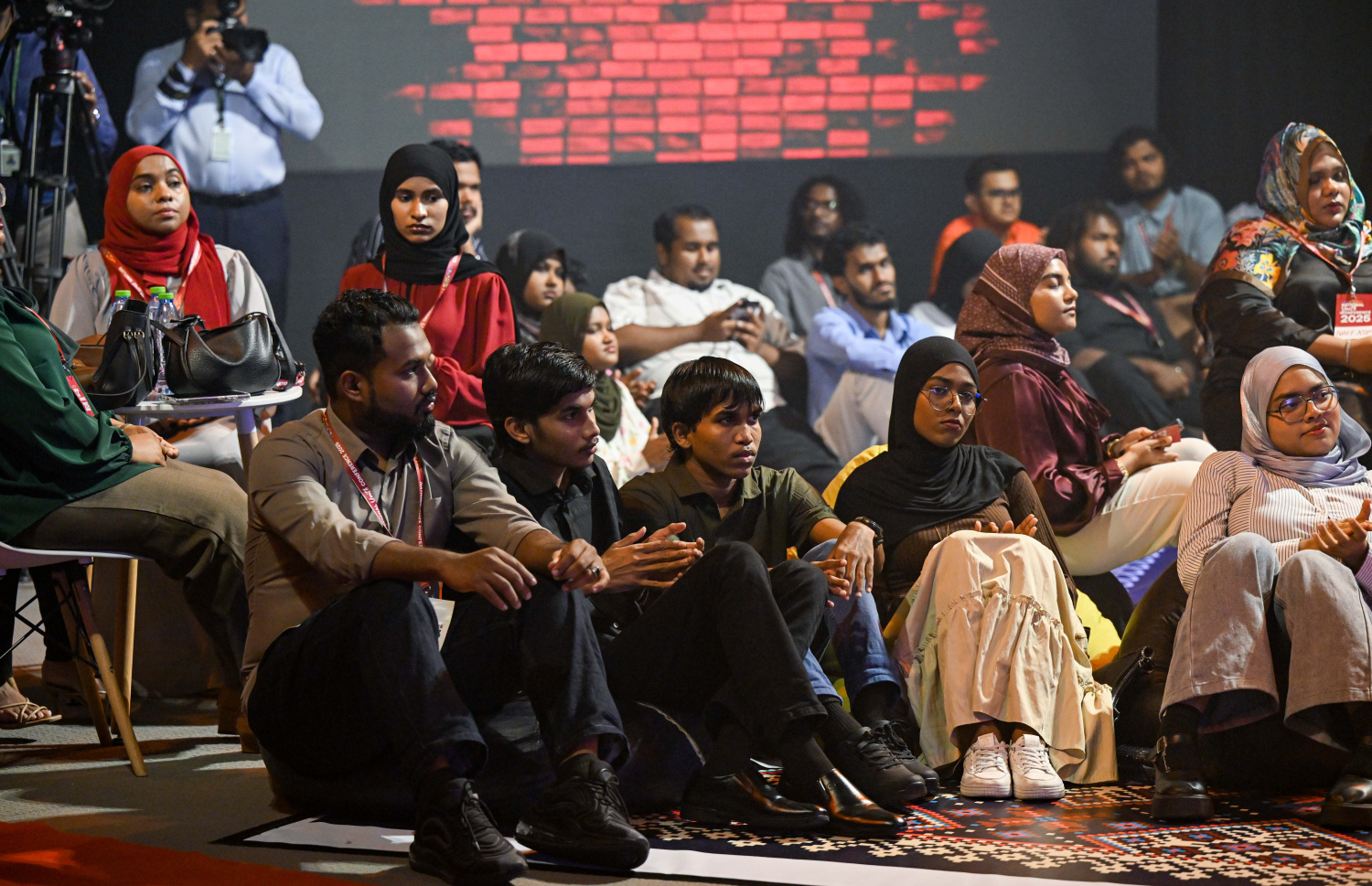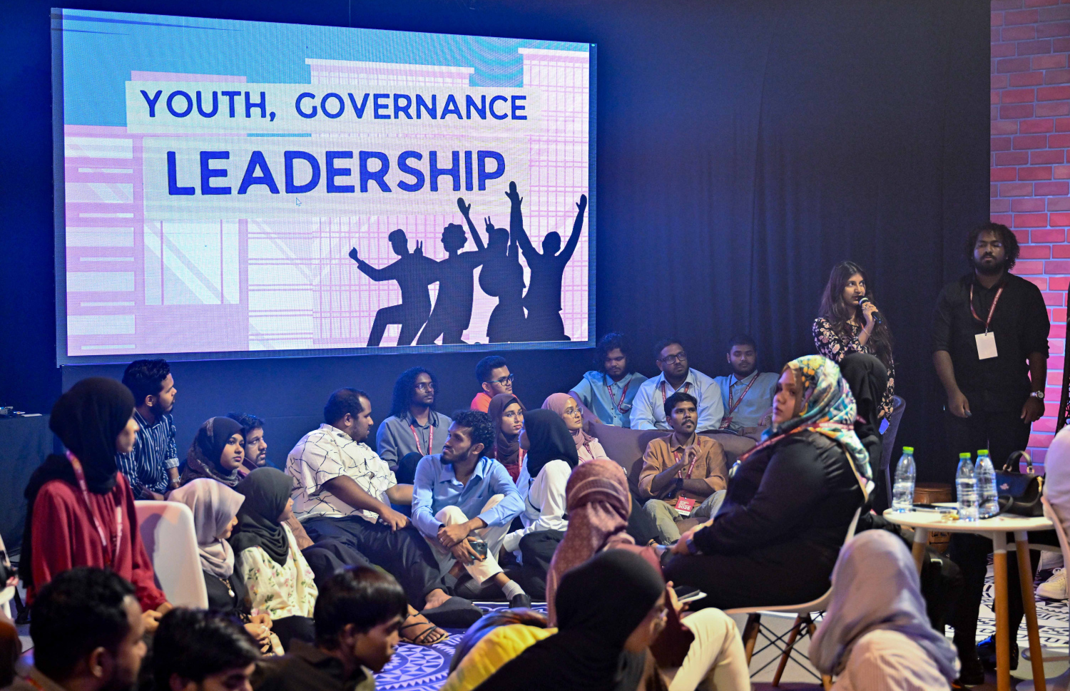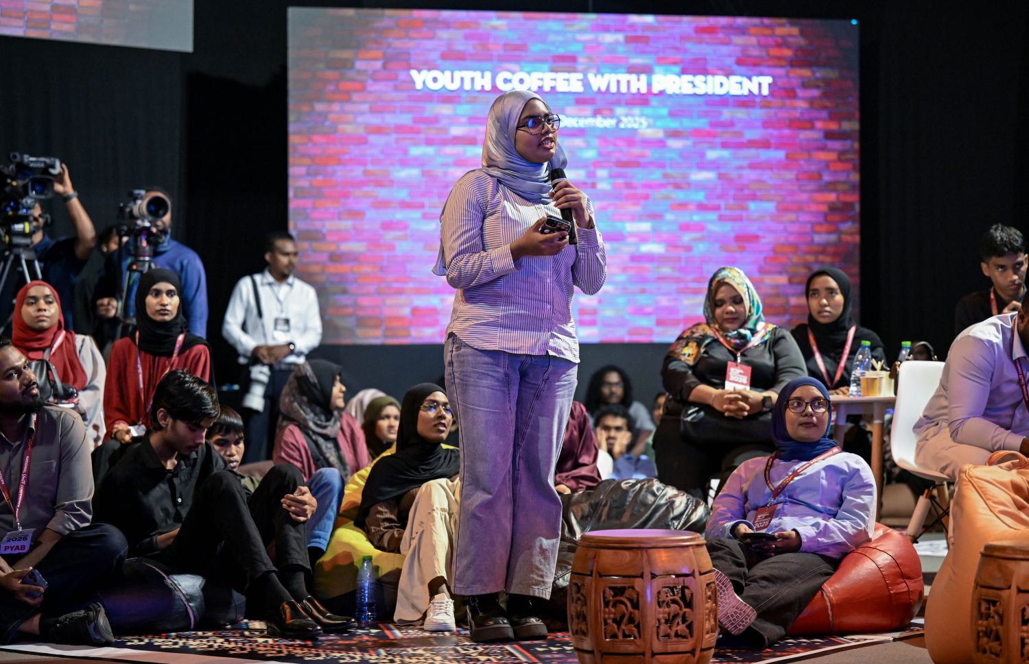 President Muizzu answering questions from the youth at the Youth Coffee with President event -- Photo: President's Office