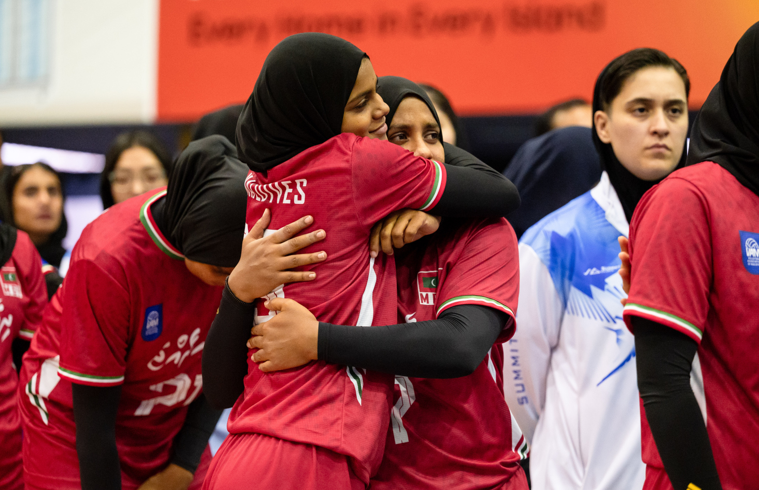 Maldives National Women's Volleyball team after having lost to Kyrgyzstan with a 3-1 set score in the CAVA Cup final -- Photo: Fayaz Moosa | Mihaaru