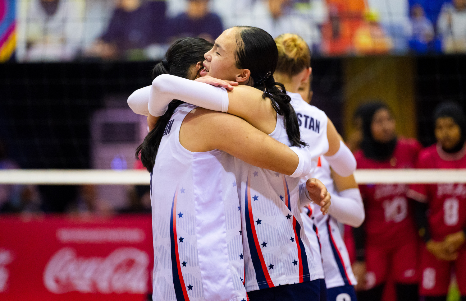 The Kyrgyzstan National Women's Volleyball team coach after having won the 2025 CAVA Cup -- Photo: Fayaz Moosa | Mihaaru