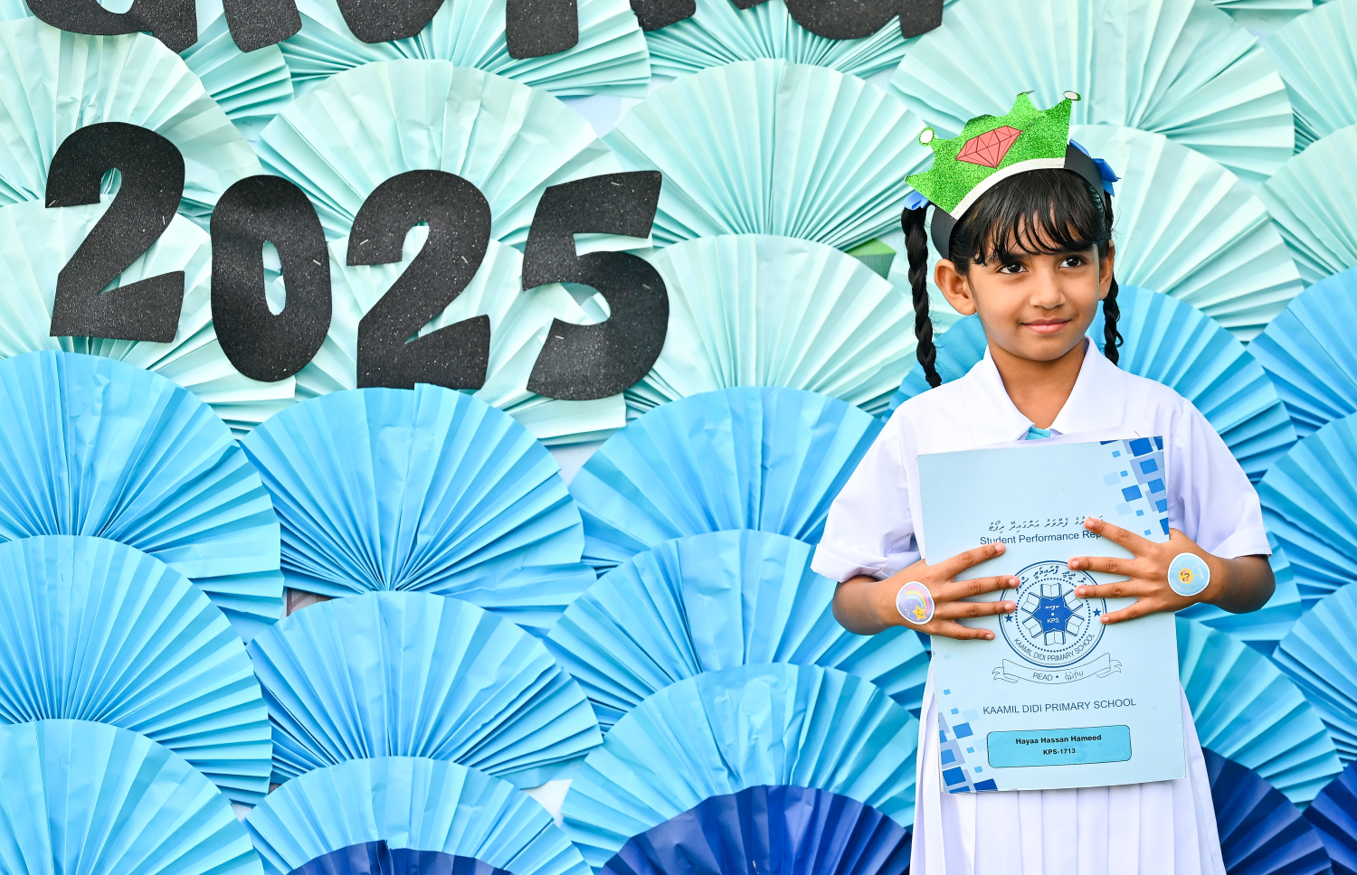 Hulhumale' Phase 2's Kaamil Didi school student leaving with their report form -- Photo: Fayaz Moosa | Mihaaru