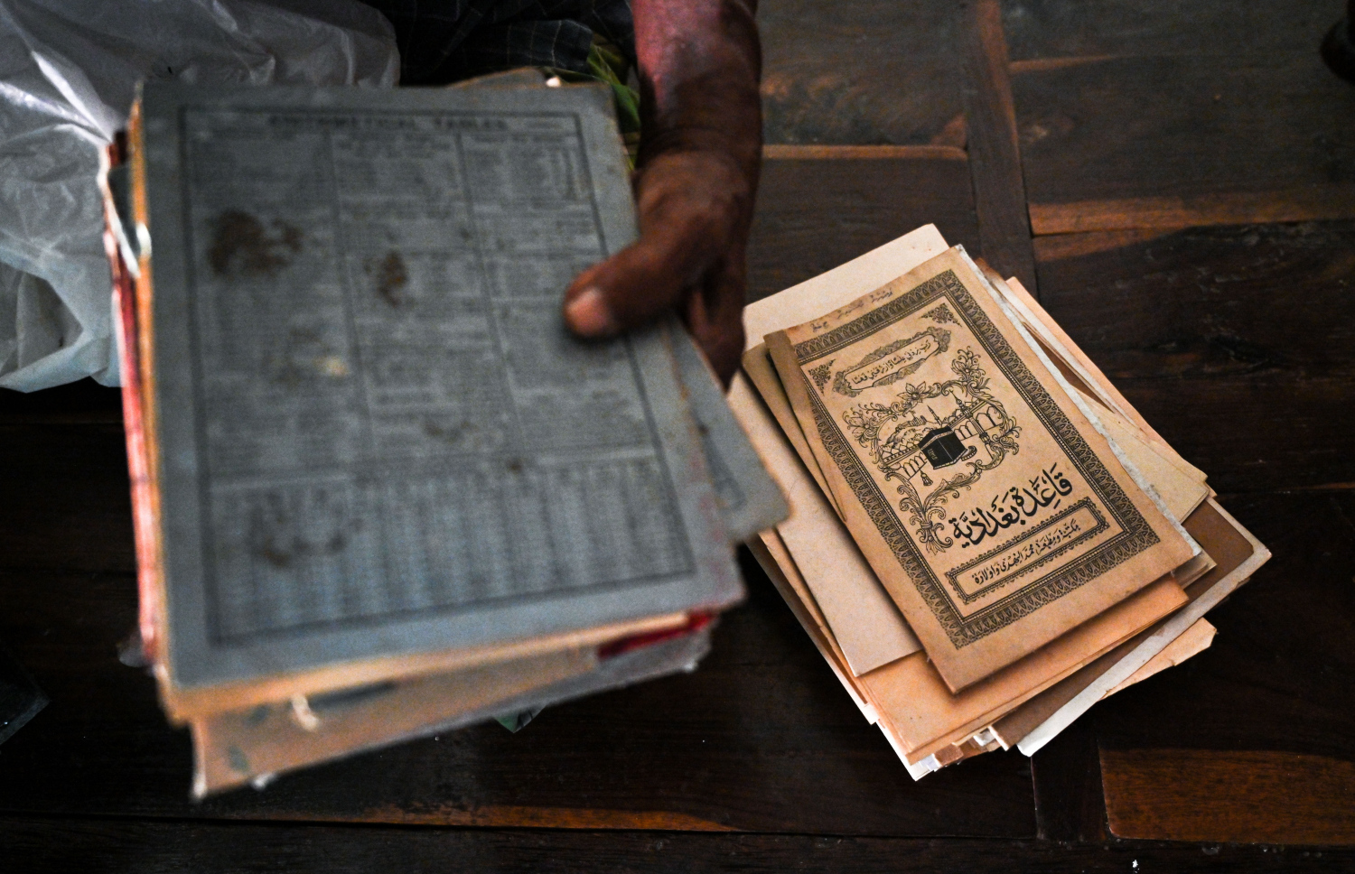 Alibe showing some of the old and preserved books he has kept -- Photo: Fayaz Moosa | Mihaaru