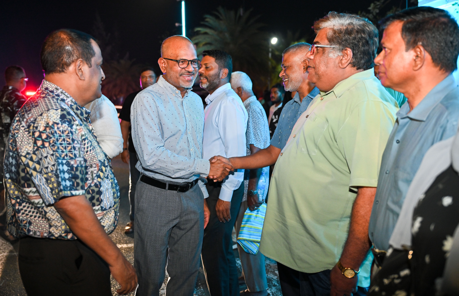 Deputy Speaker Ahmed Nazim greeting party members at Mayor of Male' candidate Moosa Ali Jaleel's campaign center opening for the upcoming Local Council Election on 4th April -- Photo: Fayaz Moosa | Mihaaru