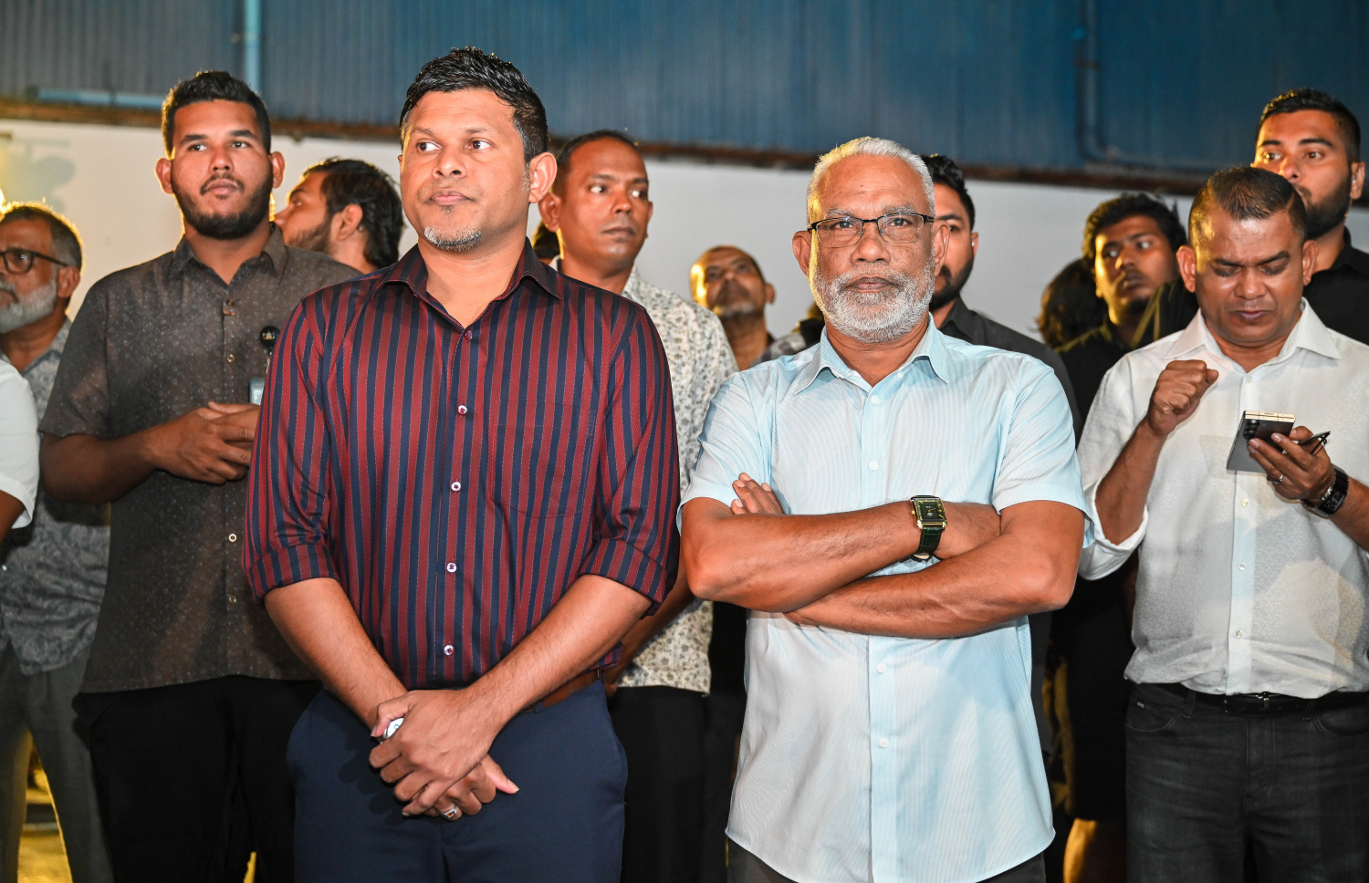 Vice President Hussain Mohamed Latheef and Speaker Abdul Raheem Abdulla attending Mayor of Male' candidate Moosa Ali Jaleel's campaign center opening for the upcoming Local Council Election on 4th April -- Photo: Fayaz Moosa | Mihaaru
