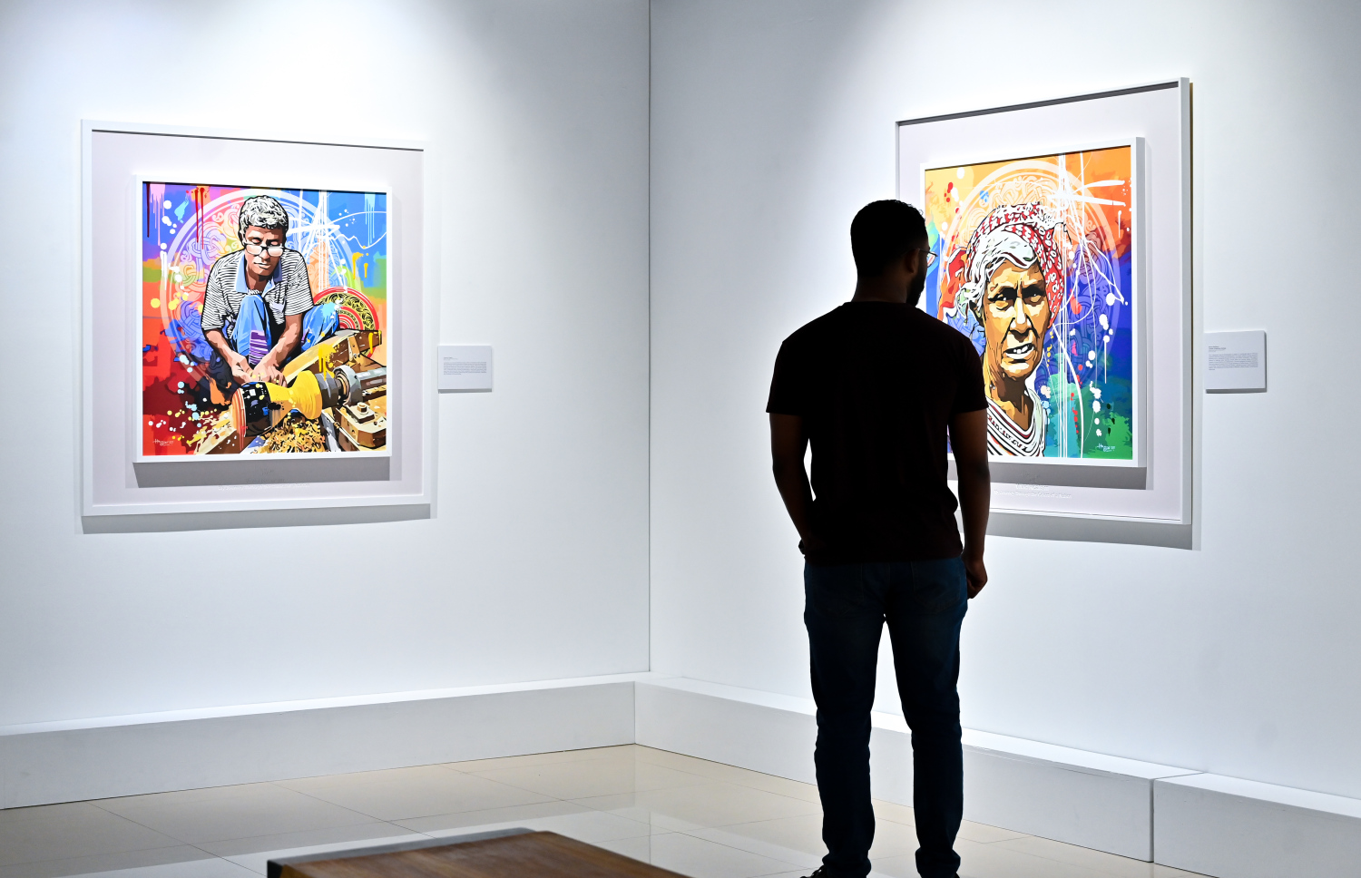 visitor to the "Vivid Realism - By Hussain" art exhibition views the paintings of artist Hussain Ali Manik.-- Photo: Fayaz Moosa | Mihaaru