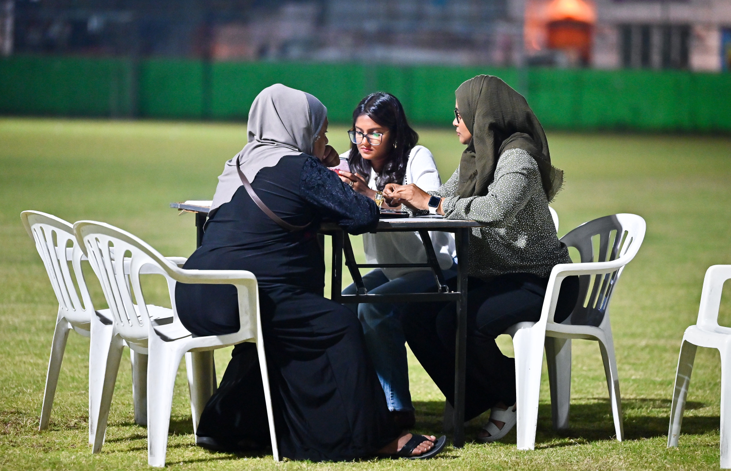 Those who want to claim their tuna can case giving their information to assigned officials at the Galolhu Stadium -- Photo: Fayaz Moosa | Mihaaru