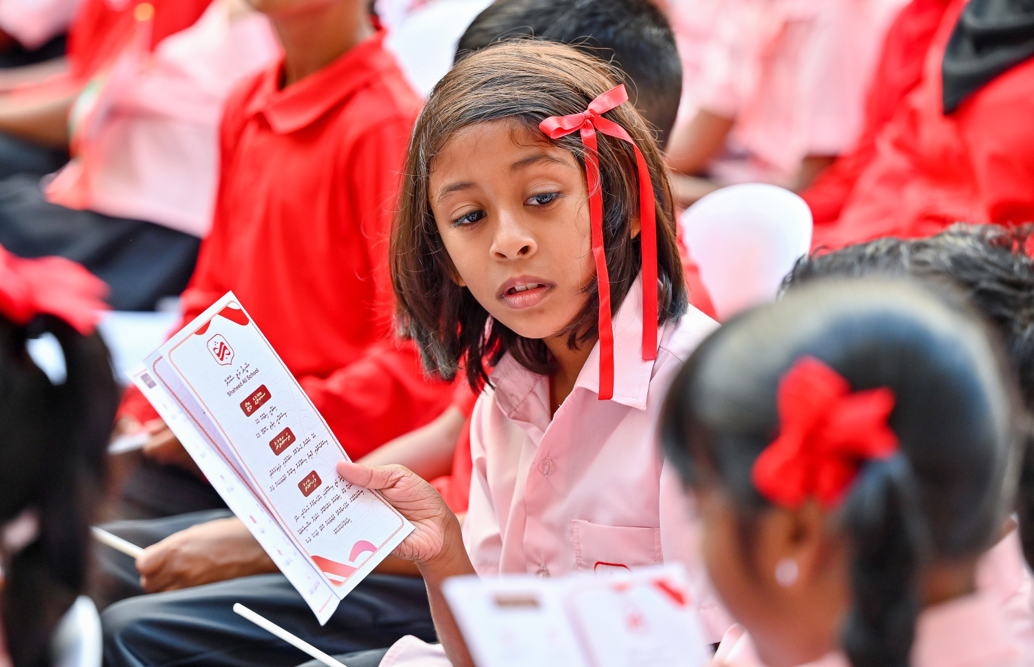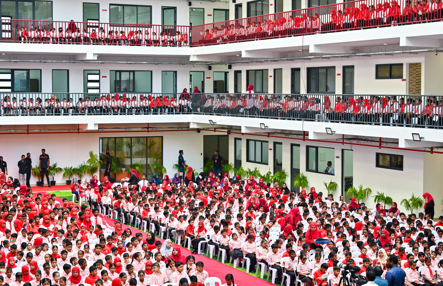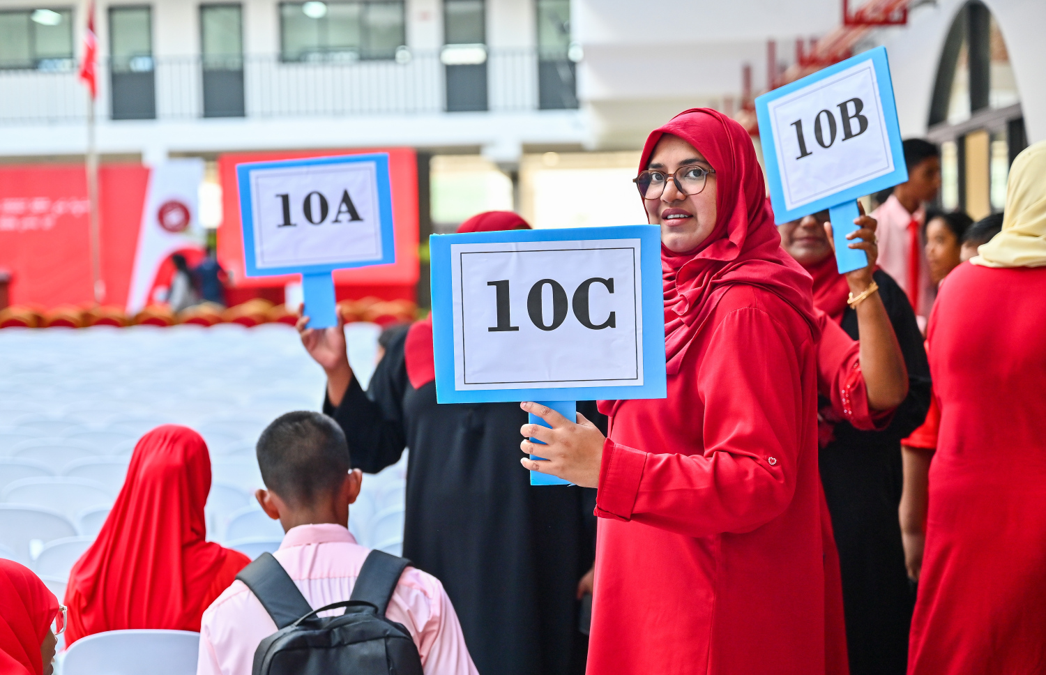 The special assembly held for the opening ceremony of the new Shaheed Ali School at Hulhumale' Phase 2, with President Dr. Mohamed Muizzu inaugurating the ceremony. The school will teach students from Grade 1 through Grade 10, with it having 54 classrooms capable of teaching 32 students per classroom, with 230 total teachers.