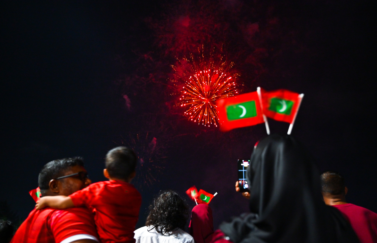 The public out to celebrate with the national futsal team at the celebration event after winning all their matches at the AFC Futsal Asian Cup with fireworks upon their return at the Artificial Beach -- Photo: Fayaz Moosa | Mihaaru