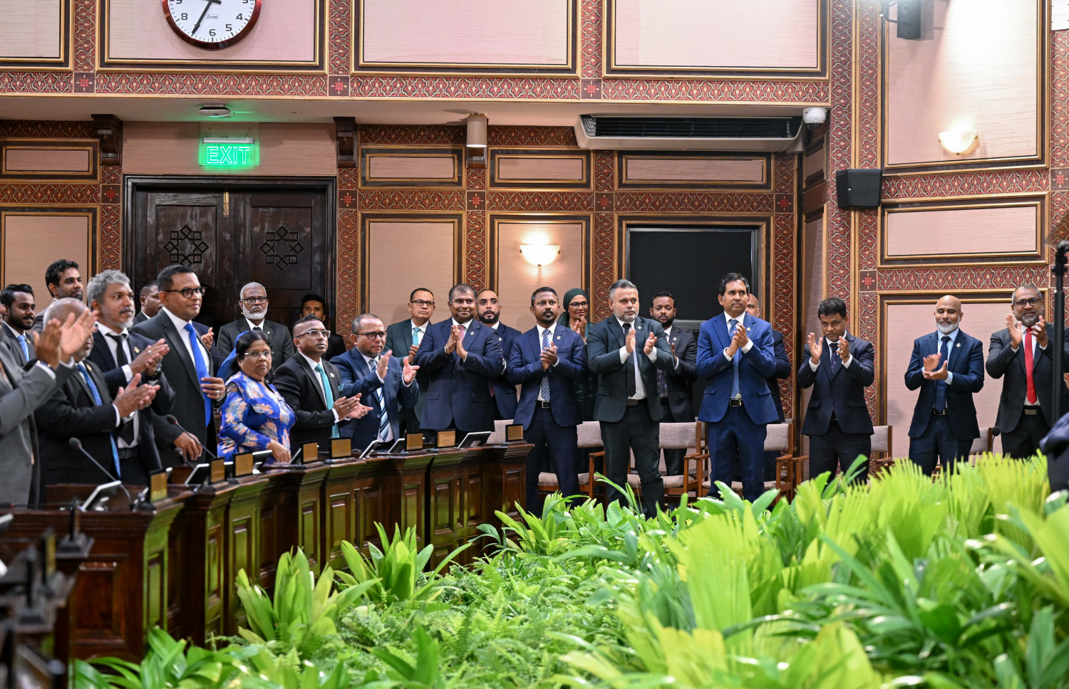 Male' - February 5, 2026: The opening session of the People's Majlis. During this session, President Dr. Mohamed Muizzu delivered the Presidential Address. The President stated that the financing facilities obtained so far to pay off the Sukuk were secured at interest rates lower than nine percent. Additionally, the President announced that the opportunity to apply for land plots will be reopened in a manner that allows individuals to apply even if their spouse owns housing --- Photos/President's Office