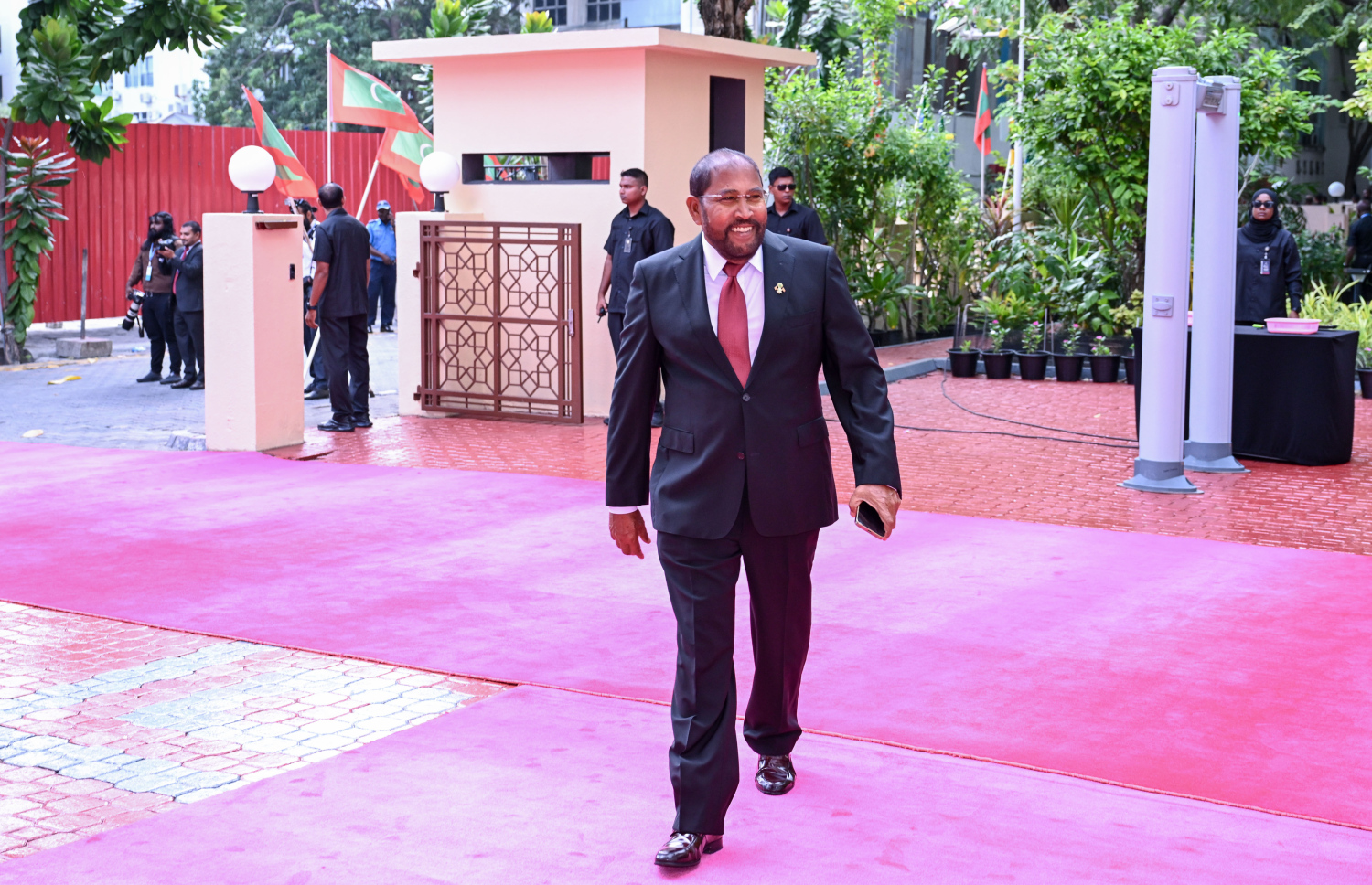 JP Leader Qasim Ibrahim arriving at the Majlis for the parliamentary session held to deliver the Presidential Address --- Photo/President's Office