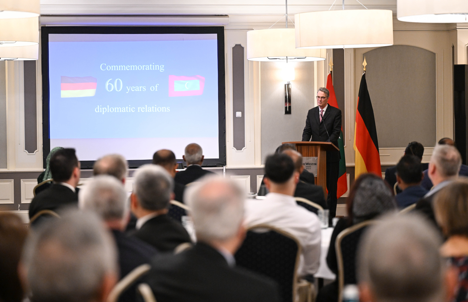 President Dr. Mohamed Muizzu participates in the ceremony to commemorate the 60th anniversary of the establishment of diplomatic relations between the Maldives and Germany during his visit to Germany at the invitation of German President Frank-Walter Steinmeier --- Photo: President's Office