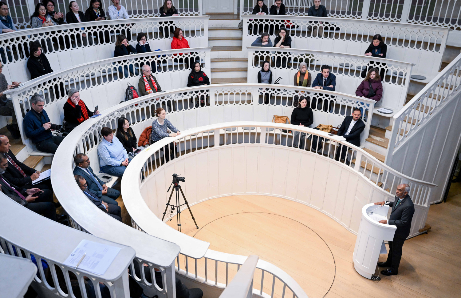 President Muizzu delivers a speech at Humboldt University of Berlin during his visit to the university as part of his ongoing official visit to Germany --- Photo: President's Office