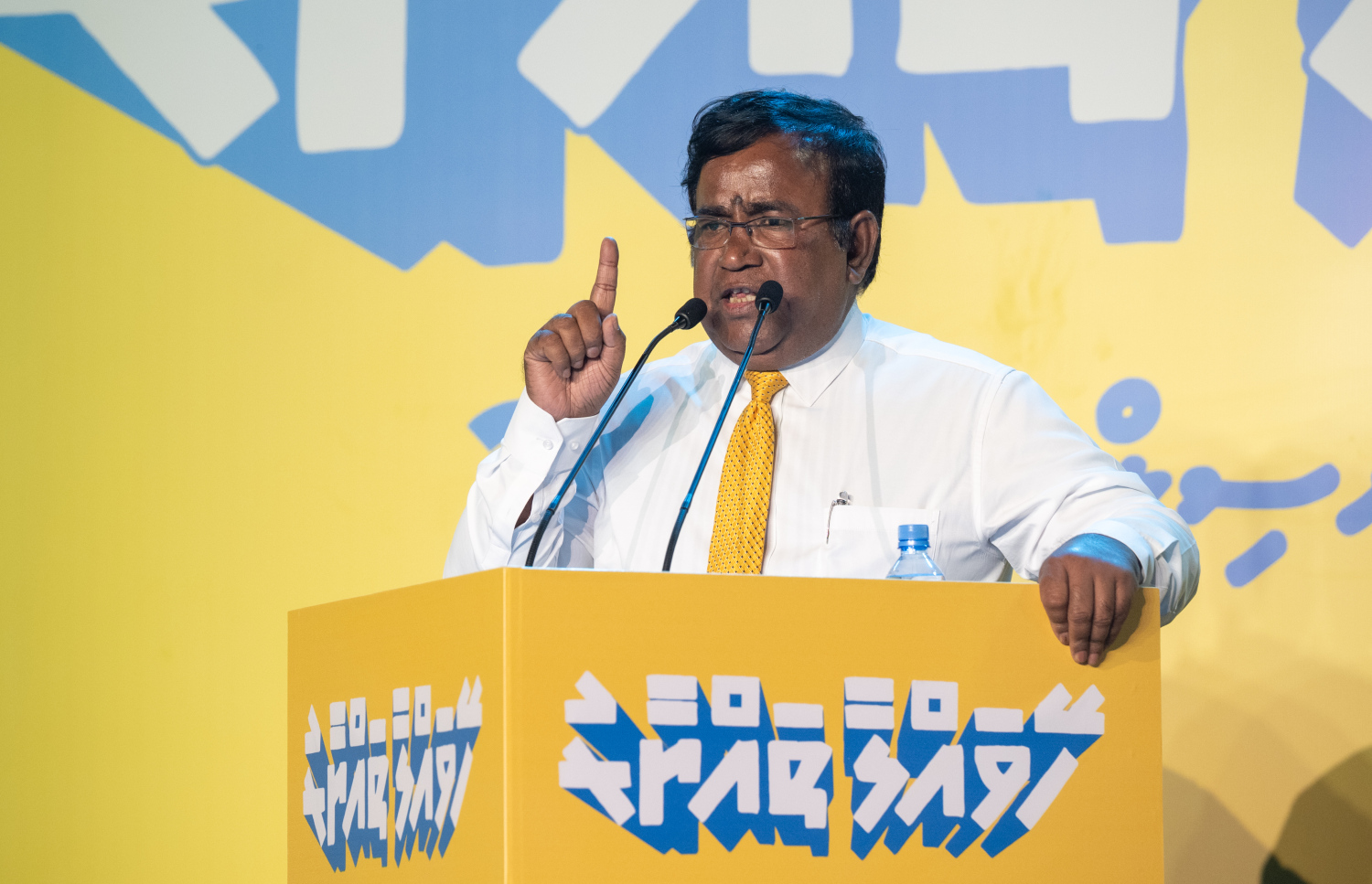 MDP Member of Parliament and the party's acting Chairperson, Abdul Ghafoor Moosa (Gapo), speaks at the campaign launch rally held by MDP last night.-- Photo: Nishan Ali | Mihaaru