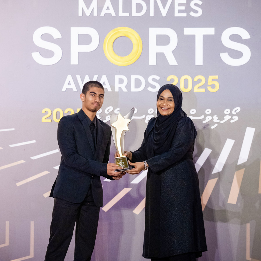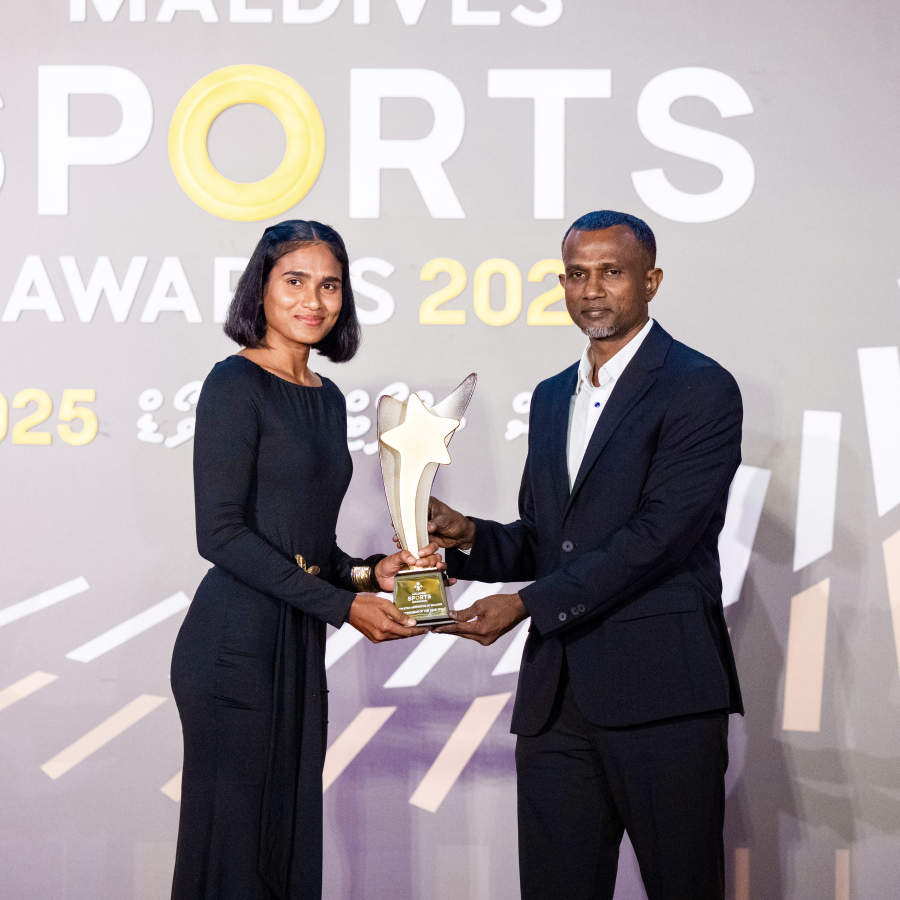 Azneen Rashad, Sportsman of the Year Gold Award (Non-Olympic Sports) at the Maldives Sports Awards 2025 -- Photo: Nishan Ali | Mihaaru