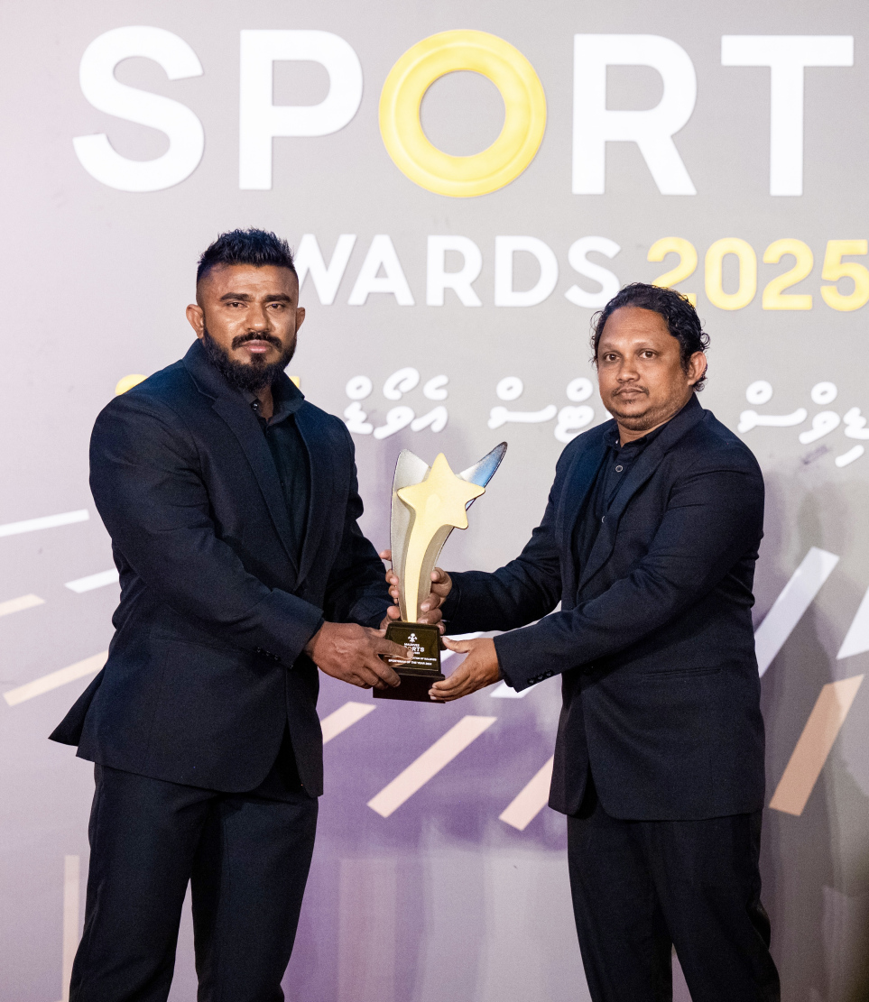 Ali Khushruwan Ahmed being presented with the Sportsman of the Year 2025 - Body Boarding award at the Maldives Sports Awards 2025 -- Photo: Nishan Ali