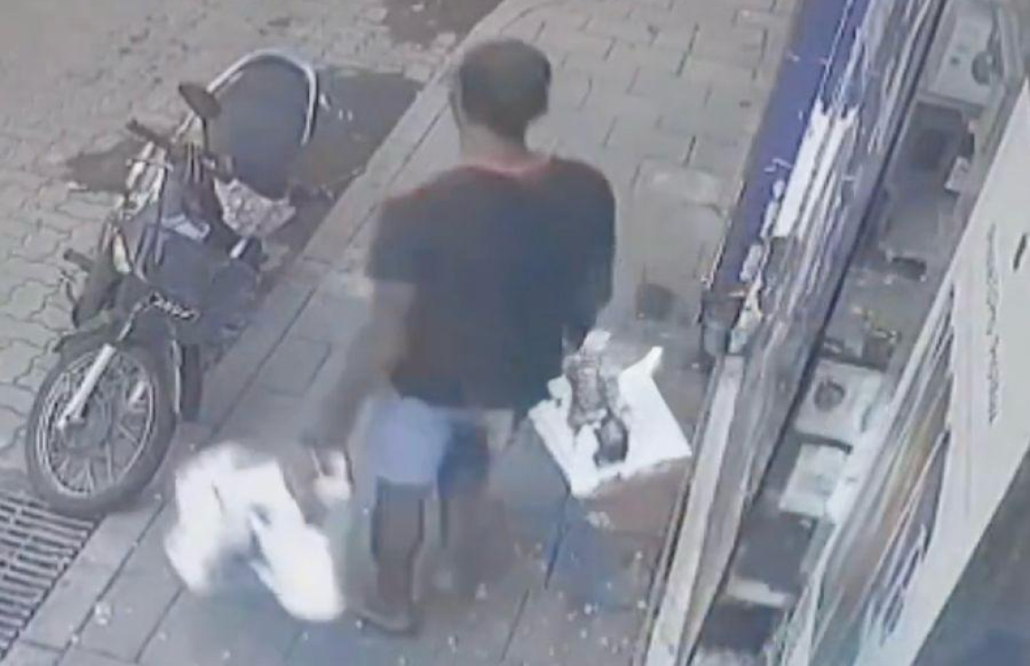 CCTV footage shows a man in a striped t-shirt, wearing a cap, hit the glass door of the shoo with an object in his hand. After breaking the glass, the man leaves without entering the shop.