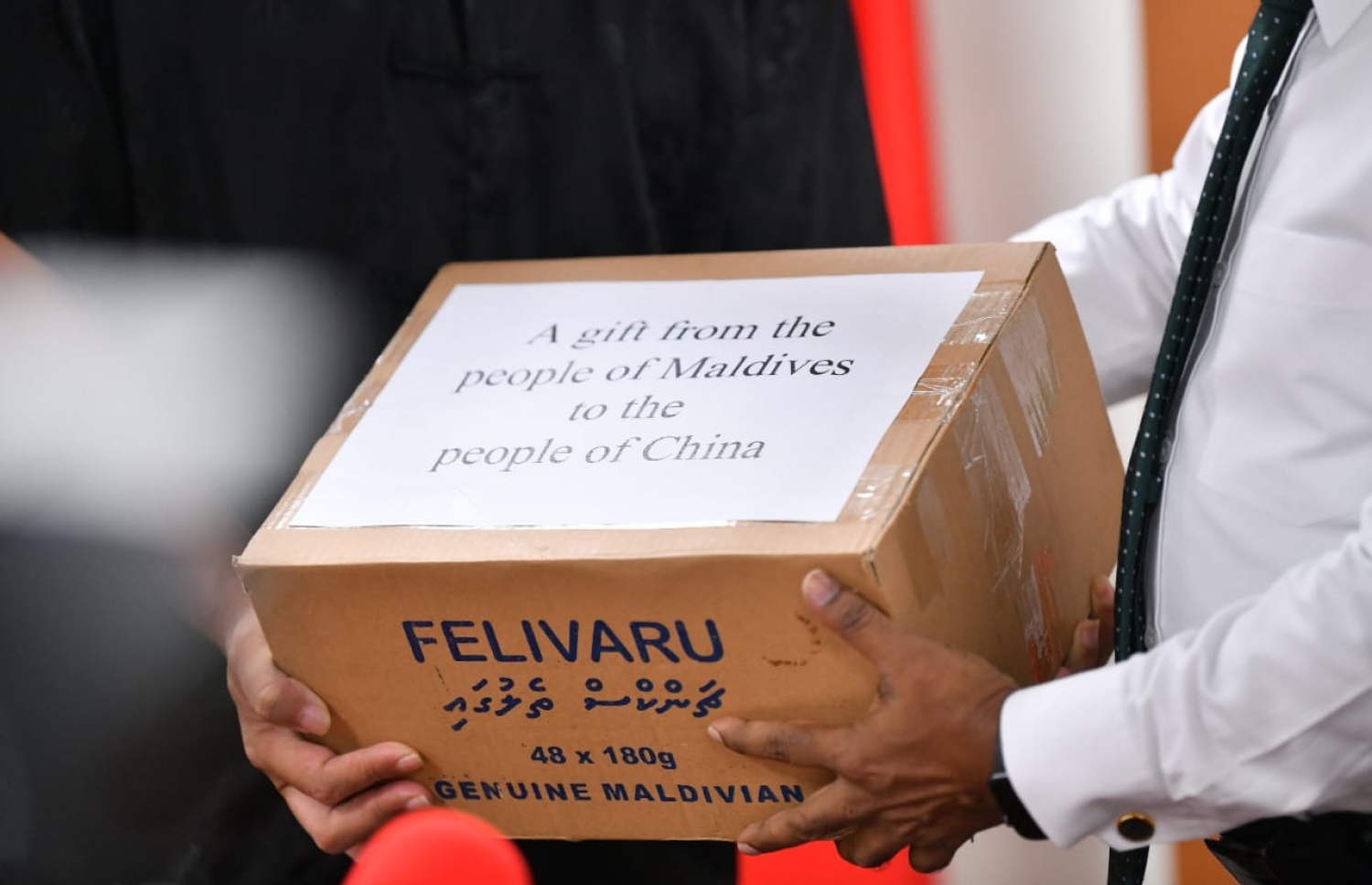 The government of Maldives donated one million cans of tuna to China on Tuesday night.