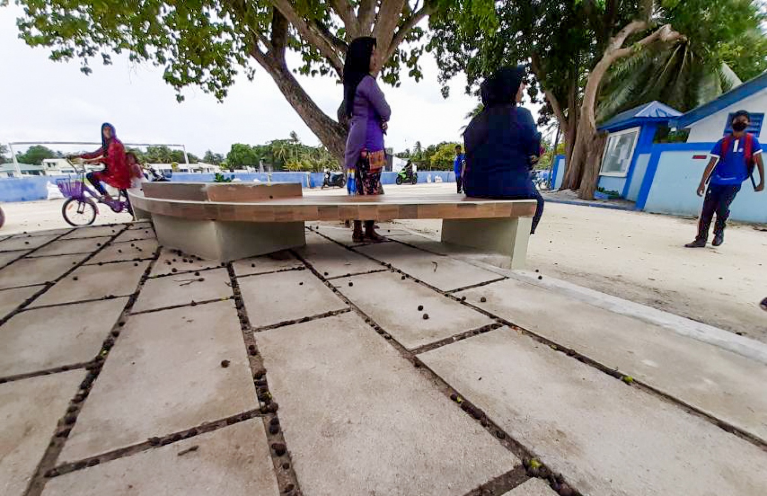 Opened by Kelaa based NGO Island Development and Environmental Awareness Society (IDEAS), the 'Kelaa School Fini Park' consists of a sheltered waiting area for parents and a designated space for students to park their bicycles.