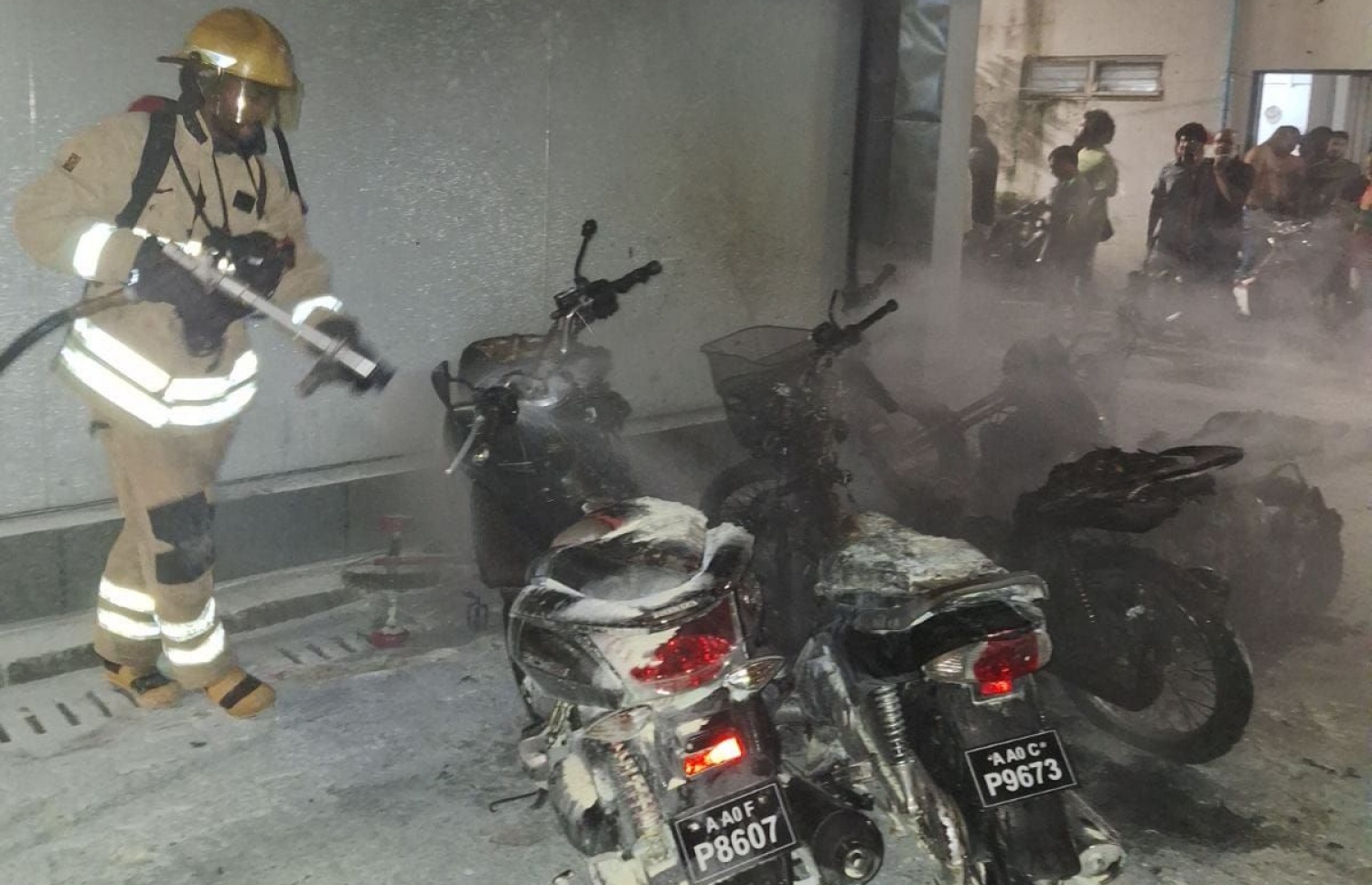 Earlier, on June 3, motorcycles in a parking lot near the Parliament building were also set on fire. A 36 year old Maldivian male was arrested in relation to that case and is being kept in remand in custody for 30 days while the investigation proceeds.