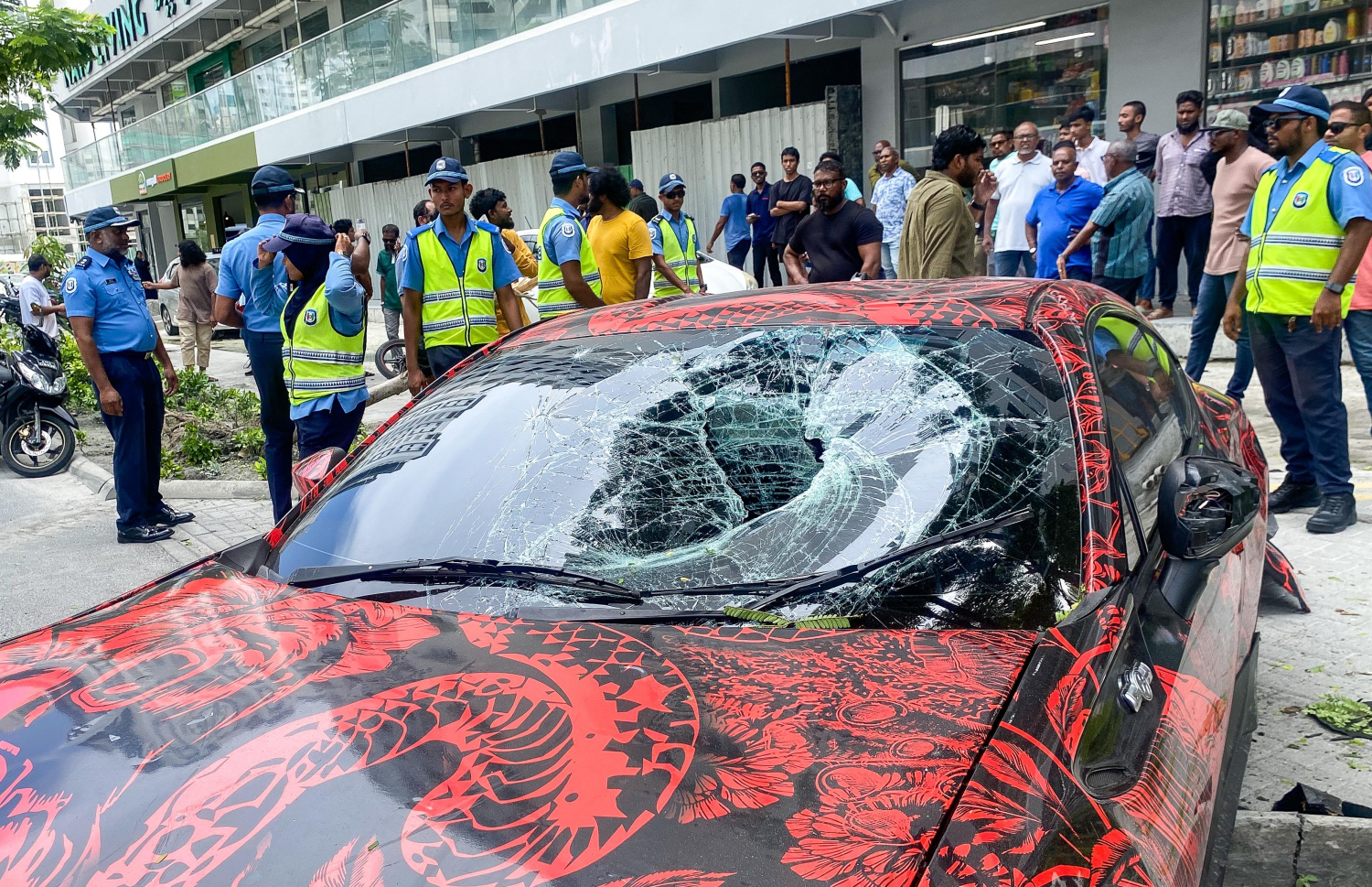 A sports car speeding in Hulhumale' Phase 2 crashed into a individual, throwing them into the air on impact. The victim has sustained serious injuries in the accident.