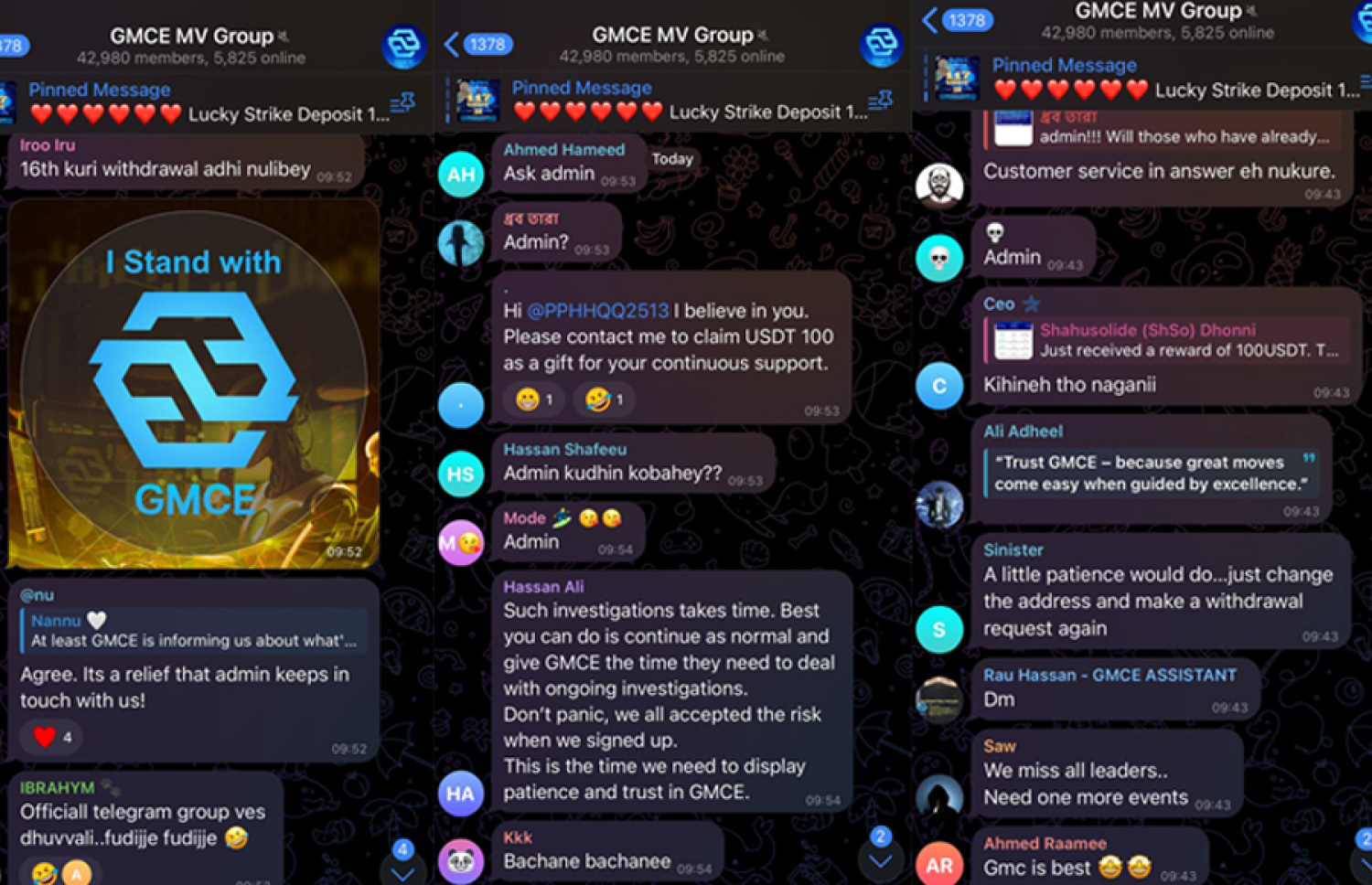 A Telegram group used by GEMCUE investors in Maldives has more than 41,000 members. Group members said that withdrawal requests have suddenly stopped being processed. Some claimed that administrators have “fled,” while others tried to reassure members that funds would be returned, asking them to remain calm and “trust the system.”