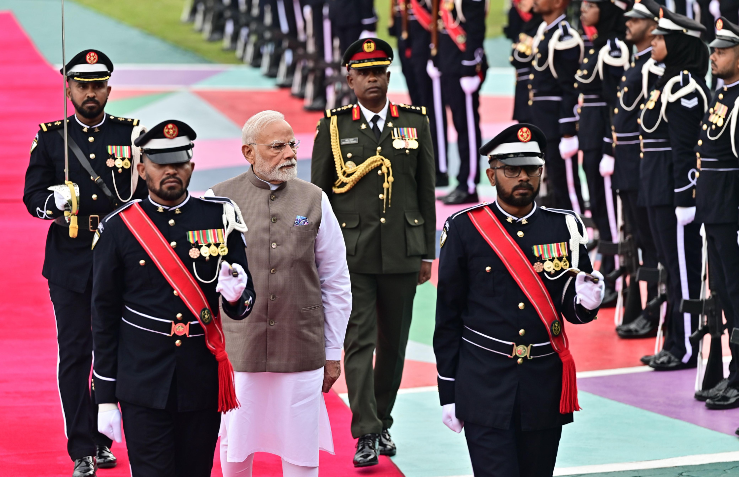 Indian Prime Minister Narendra Modi received a ceremonial welcome in Male' on his two day official visit to Maldives at the invitation of President Dr Mohamed Muizzu.