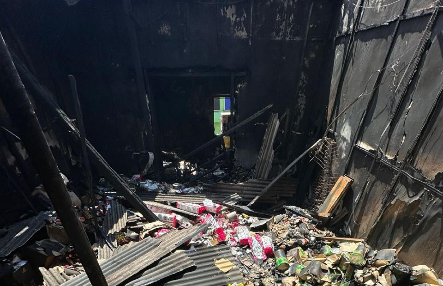 MNDF said that a large amount of goods stored in the premises had been burned beyond use, as well as the roof of the building having collapsed.