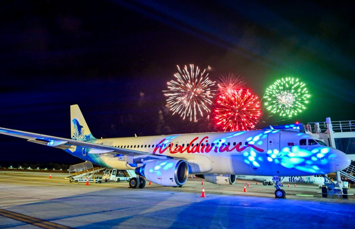 Maldivian's A320 flight landed tonight at Hanimaadhoo International Airport for the first time.