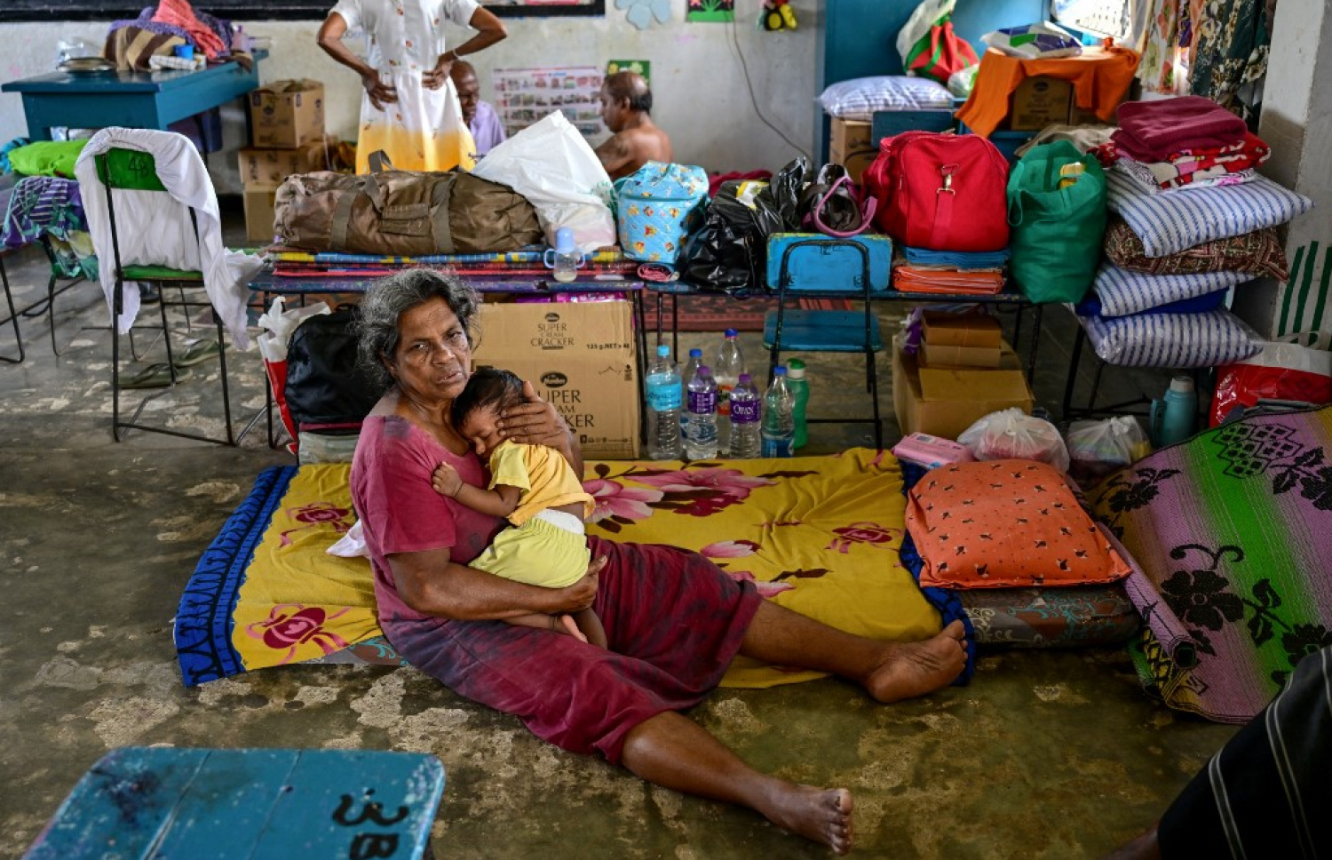 An elderly woman along with a child takes refuge at a relief camp inside a school after being evacuated following rapid floods in Wellampitiya -- Photo: Ishara S. KODIKARA / AFP
