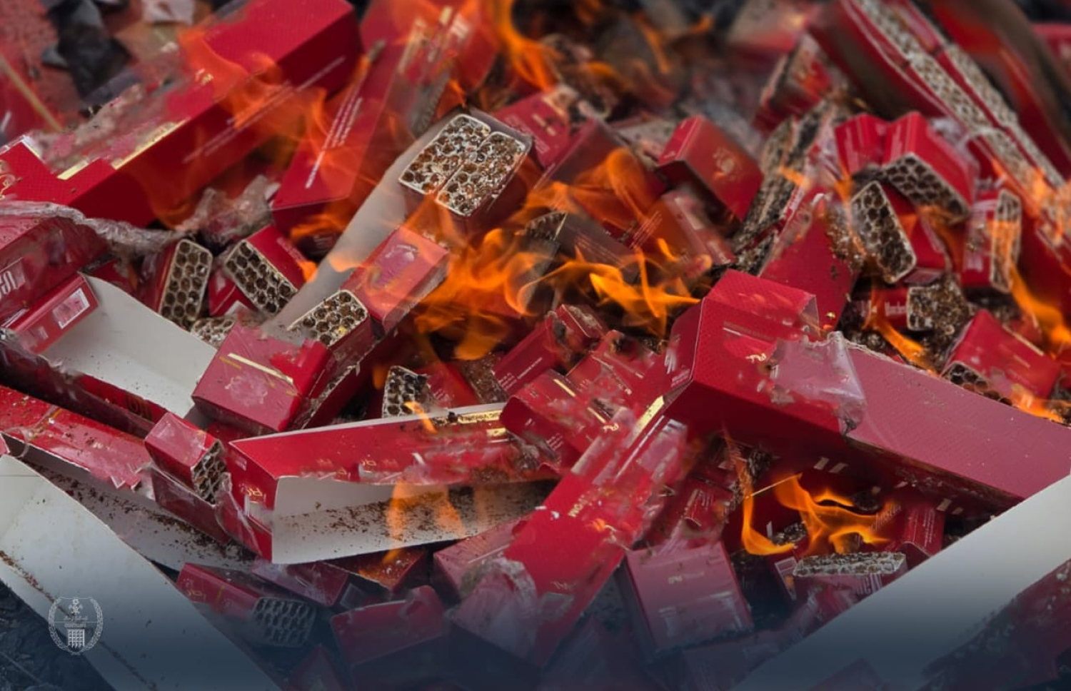 Maldives Customs Service today destroyed 1.8 million cigarette sticks that