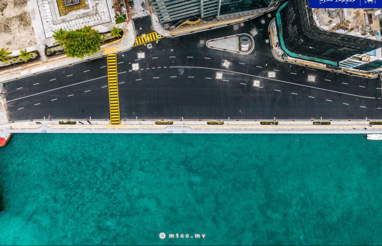 The MVR 144 million project to widen Boduthakurufaanu Magu was awarded to MTCC in August. The first segment of the project covers the expansion of the road outwards into the lagoon from the Fish Market up until the Republic Square, with it having been expanded into four lanes and asphalted. The road was opened yesterday upon completion.