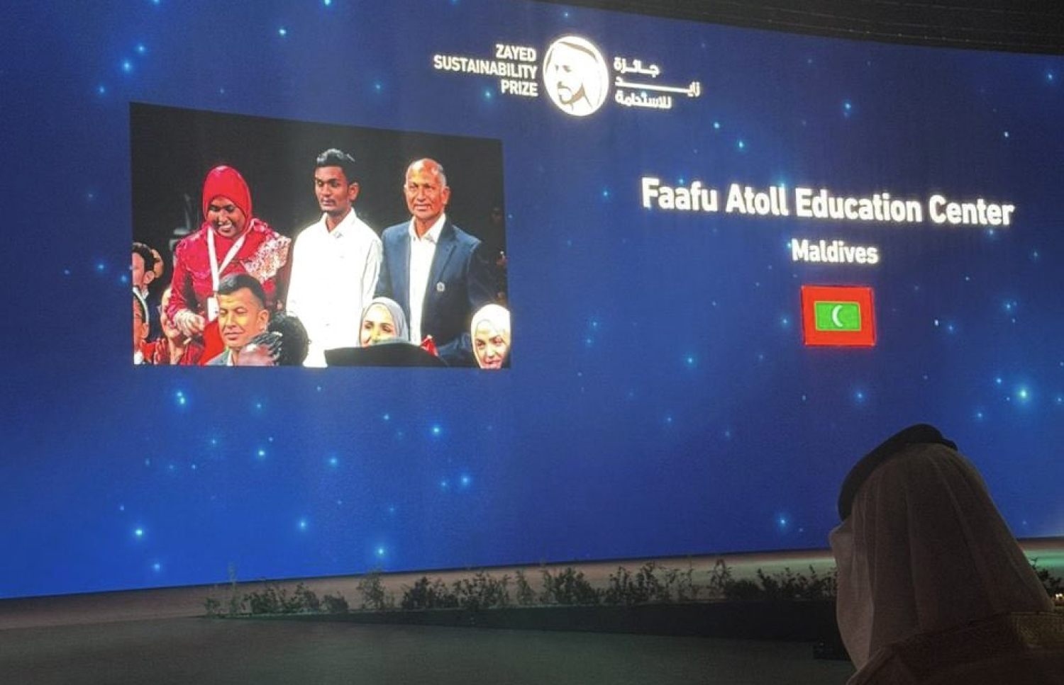 The prize-giving ceremony took place today during the opening of "Zayed Sustainability Week." The ceremony was attended by the Minister of Foreign Affairs, Dr. Abdulla Khaleel, who is a native of Nilandhoo.
