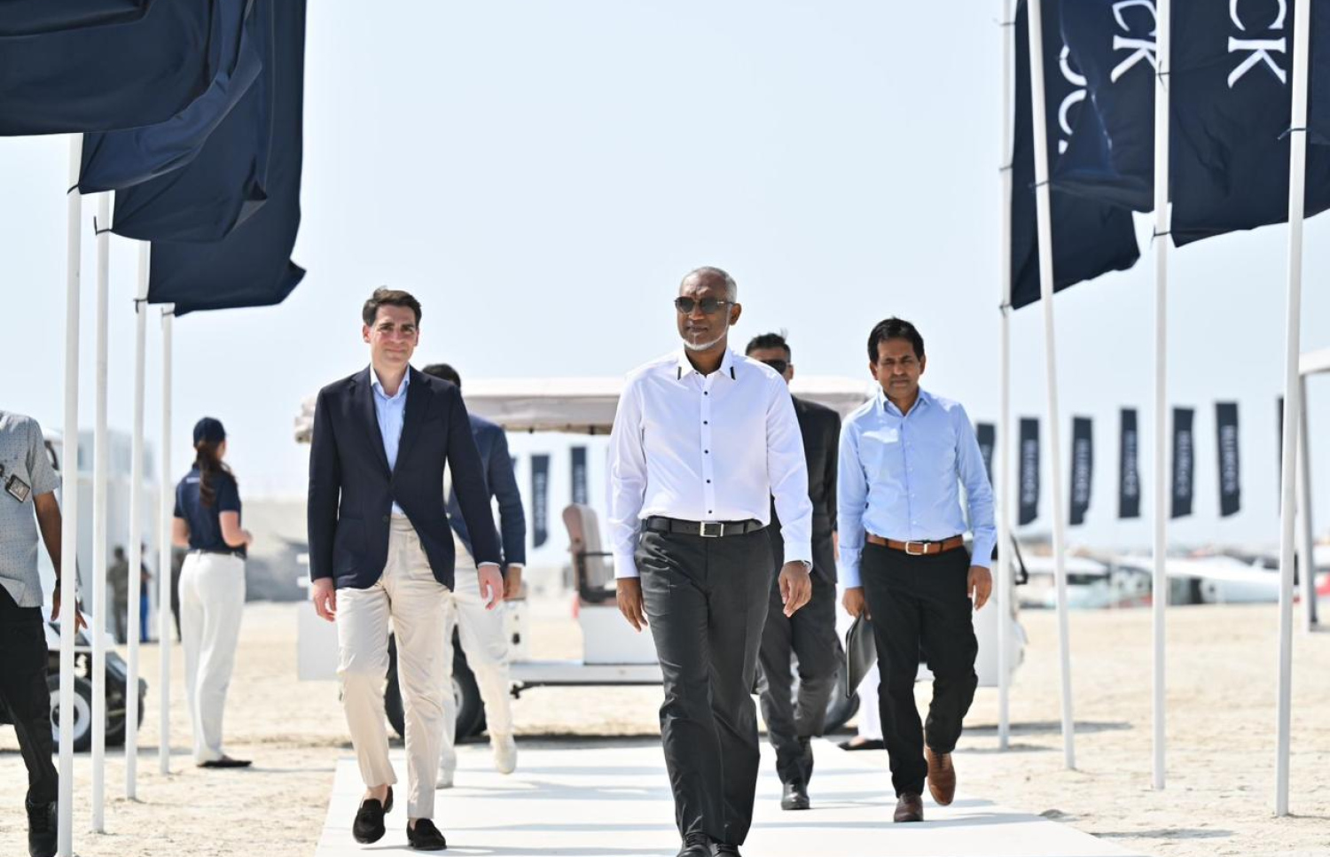 President Dr. Mohamed Muizzu inaugurated the project titled "Ayla Maldives", which will be built at N. Kuramaadhoo, N. Dhekenanfaru and N. Dhigufaru. The ceremony was held on a reclaimed piece of land in the area, with ministers and MP's in attendance.