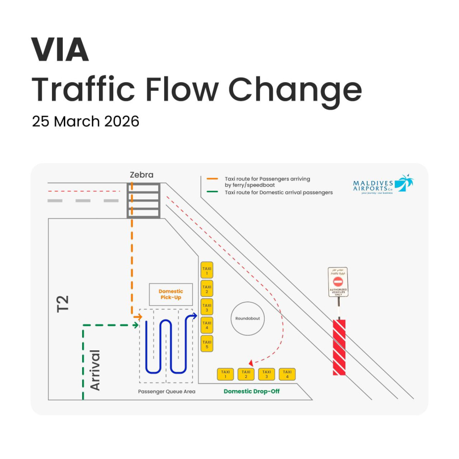In a statement, Maldives Airports Company Ltd (MACL) said passengers using Terminal 2, which is the current domestic terminal can get on and off taxis from 10 am onwards.