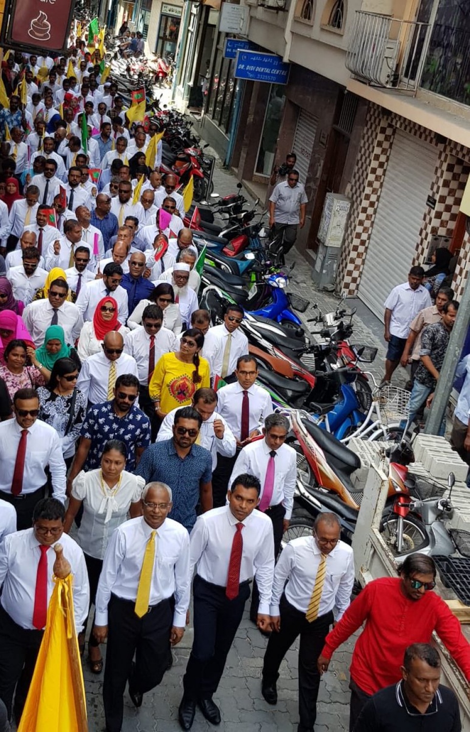 MP Ibu and MP Faisal were accompanied by a parade of senior officials and supporters from the opposition coalition as they proceeded to the Elections Commission.