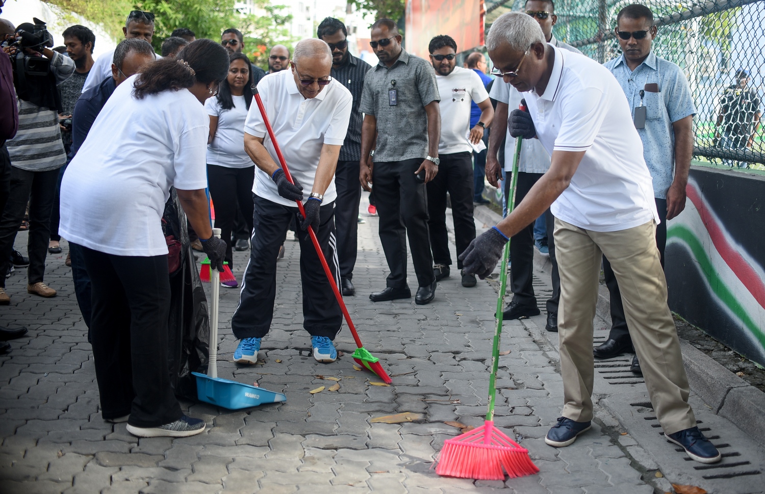Vice-President Faisal Naseem and former President Maumoon Abdul Gayoom joined the event alongside the incumbent President to honour the program targetted at raising awareness against littering.