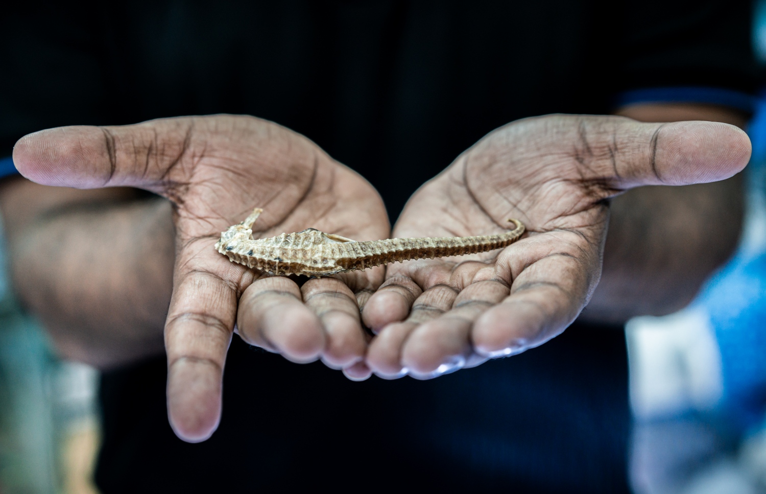 A shopkeeper shows off an unidentified species of seahorse that was reportedly caught on a seagrass meadow in the Maldives. Seahorse species in the Maldives have been poorly documented and it is not known what species are being exploited. Worldwide, seahorses are taking a hard hit in the Chinese medicine trade because of their false claims to have ‘viagra-like powers’.
