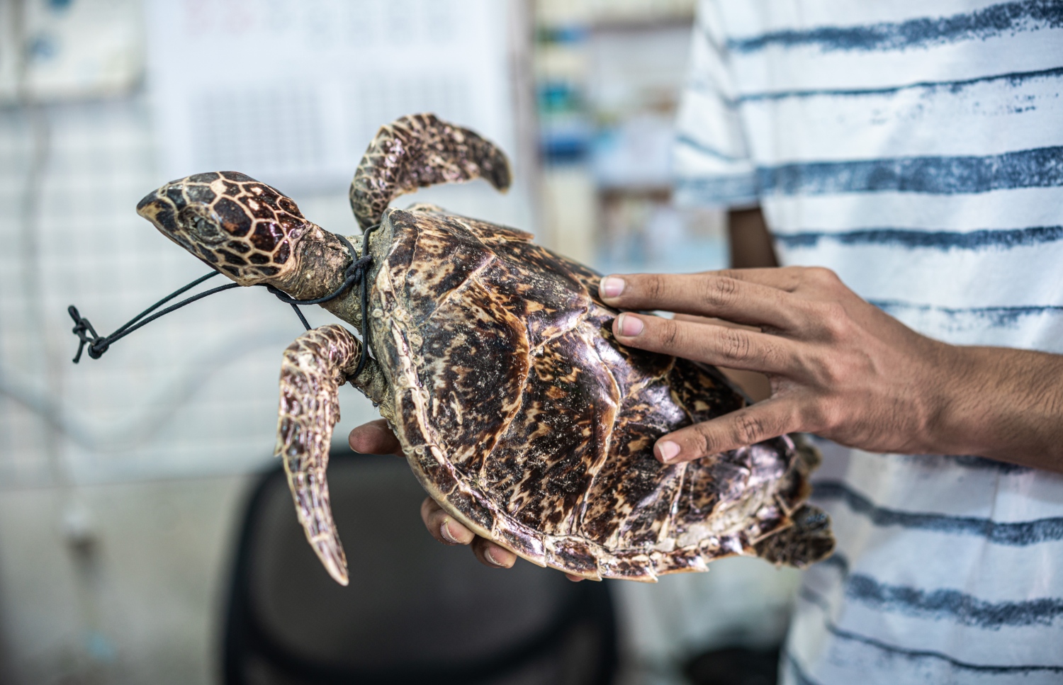 Considered the world’s rarest sea turtle species, the trade in hawksbill sea turtles is largely considered the main reason for their major decline to an estimated 8000+ individuals globally. The Maldives is believed to be the most important feeding grounds for the Indian Ocean population. Given their significant declines and importance to the Maldives' tourism industry, since 1995 the Maldives government has taken a strong stance legislatively on the protection of sea turtles by introducing a law by prohibiting the catch, kill, export, or sale of turtles in the Maldives. Five of the seven shops investigated, more than 70%, sold hawksbill turtle products. The sale of whole hawksbills, shells and their jewellery at shops in plain sight across the city highlights the government’s failure to implement the most prominent of environmental laws.