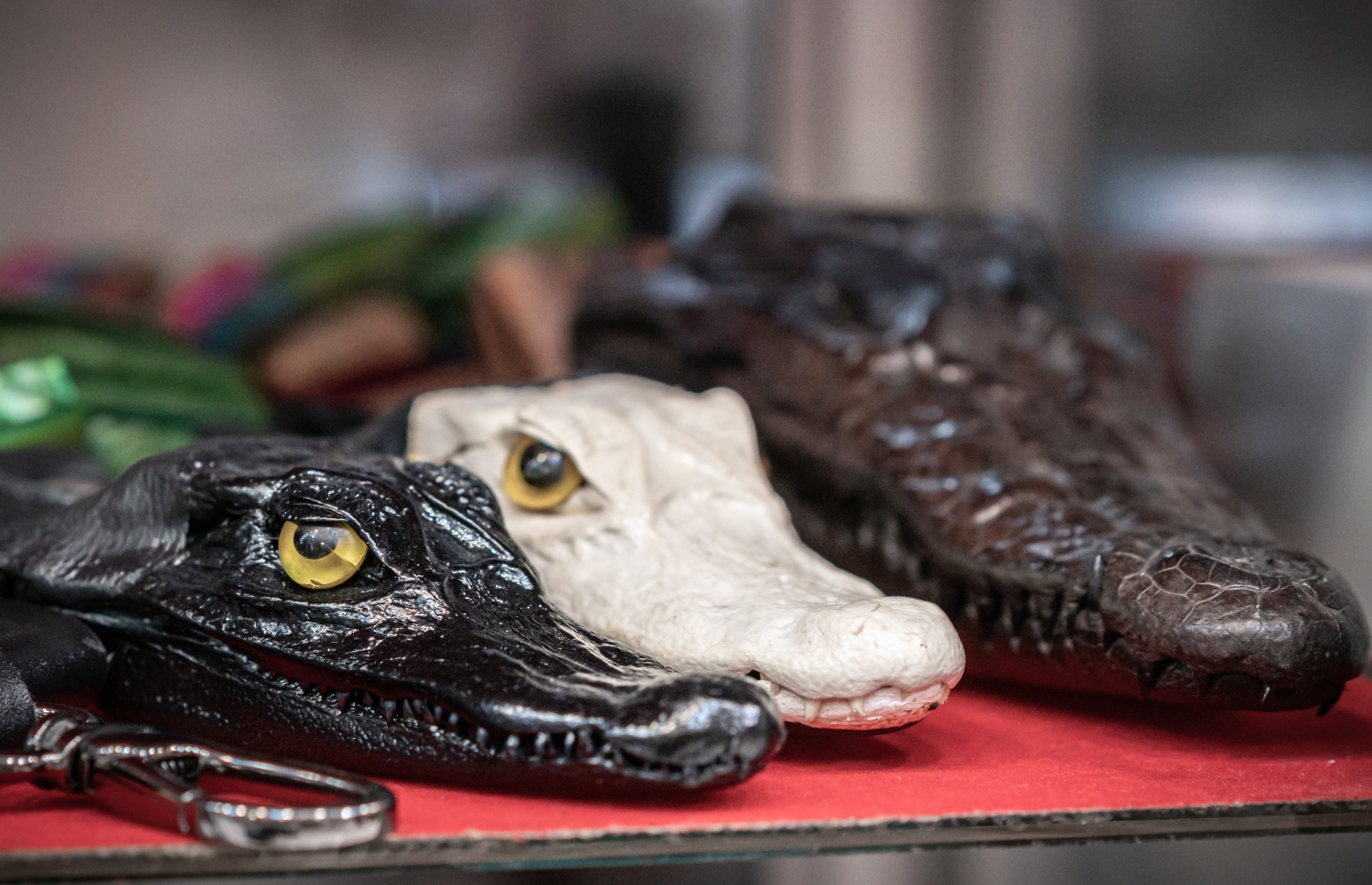 Unknown species of crocodile and alligator for sale. Shopkeepers were unclear about where the heads were imported from, with some saying Indonesia.
