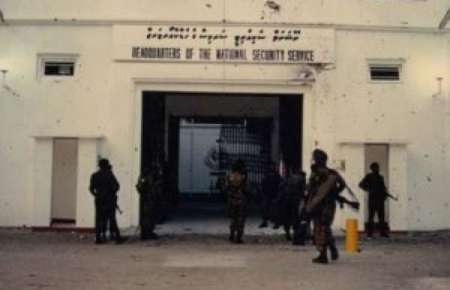 It was 1:45 a.m. when the Indian army, aided by local soldiers, made it to President Maumoon’s secret hideaway at Gulisthaanu house in Maafannu ward. Colonel Joshi and Major Dhillon took a unit of soldiers with Lieutenant Ahmed Zahir to meet the president, after which President Maumoon and the colonel commenced strengthening the defences and security of the area.