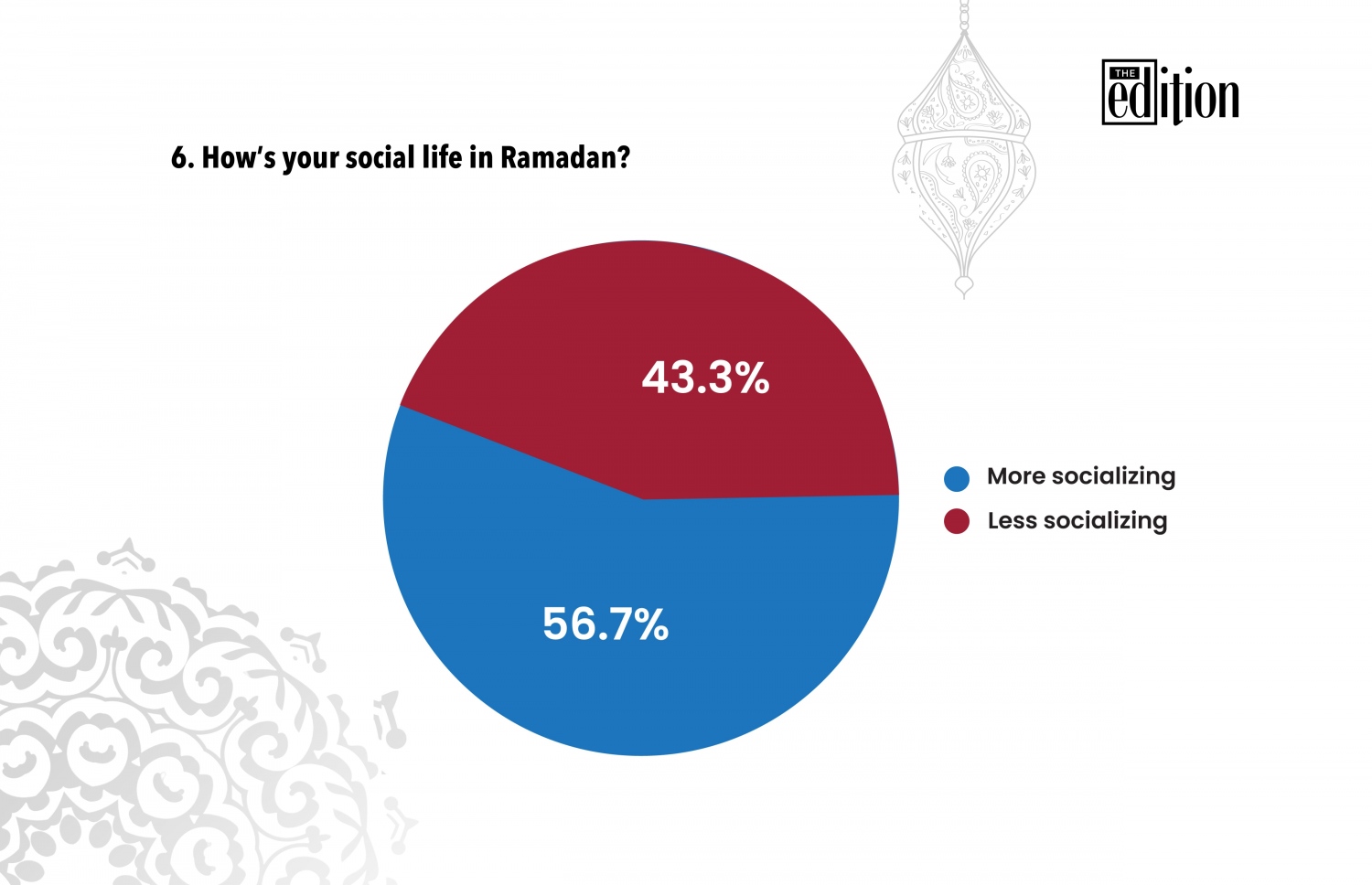 Not much of a substantial difference was noticed between the two amongst the Edition's interviewees with 56.7% of responses reporting more social activity noticed in their lives during Ramadan.