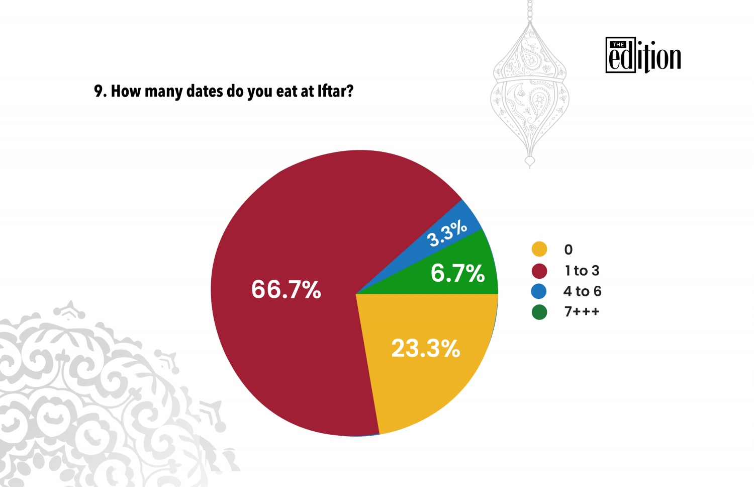 The Edition aimed to collect local preferences on dates during Iftar hours and presented the interviewees with four options indicating the number of dates eaten during each Iftar meal.