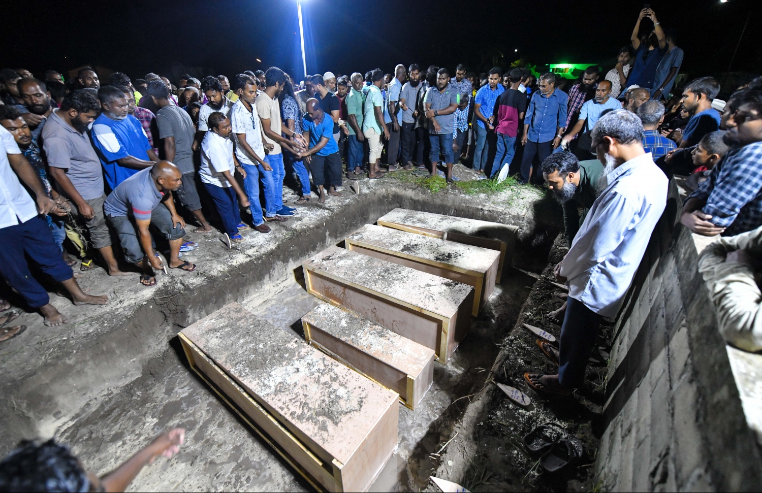 During the funeral held in HDh.Hanimaadhoo for the five victims who lost their lives after the speedboat they were travelling in capsized in late August 2019. PHOTO: HUSSAIN WAHEED / MIHAARU