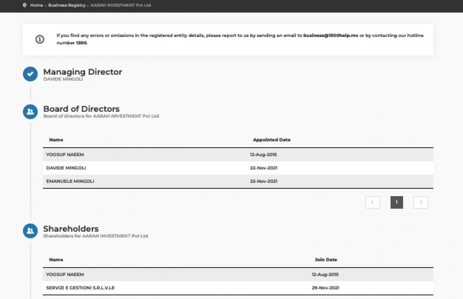 Yusuf Naeem, Roberto Sulas and Marco Mangoli have stakes in 2G Pvt Ltd. The two foreigners are shareholders of the company operating Vaavu atoll, Dhiggiri and Alimatha resorts.