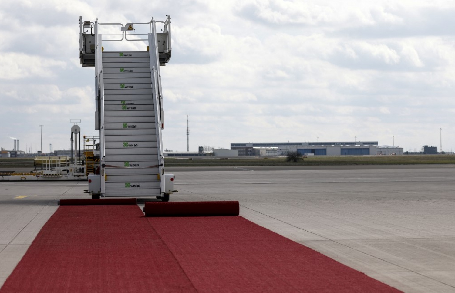 The red carpet is prepared ahead the arrival of Britain's King Charles III and Britain's Camilla, Queen Consort at Berlin Brandenburg Airport in Schoenefeld near Berlin, on March 29, 2023. - Britain's King Charles III began his first state visit, having postponed a trip to France due to widespread political protests. Charles will undertake engagements in the German capital and in Brandenburg before heading to Hamburg during the three-day tour. -- Photo: Odd Andersen / AFP