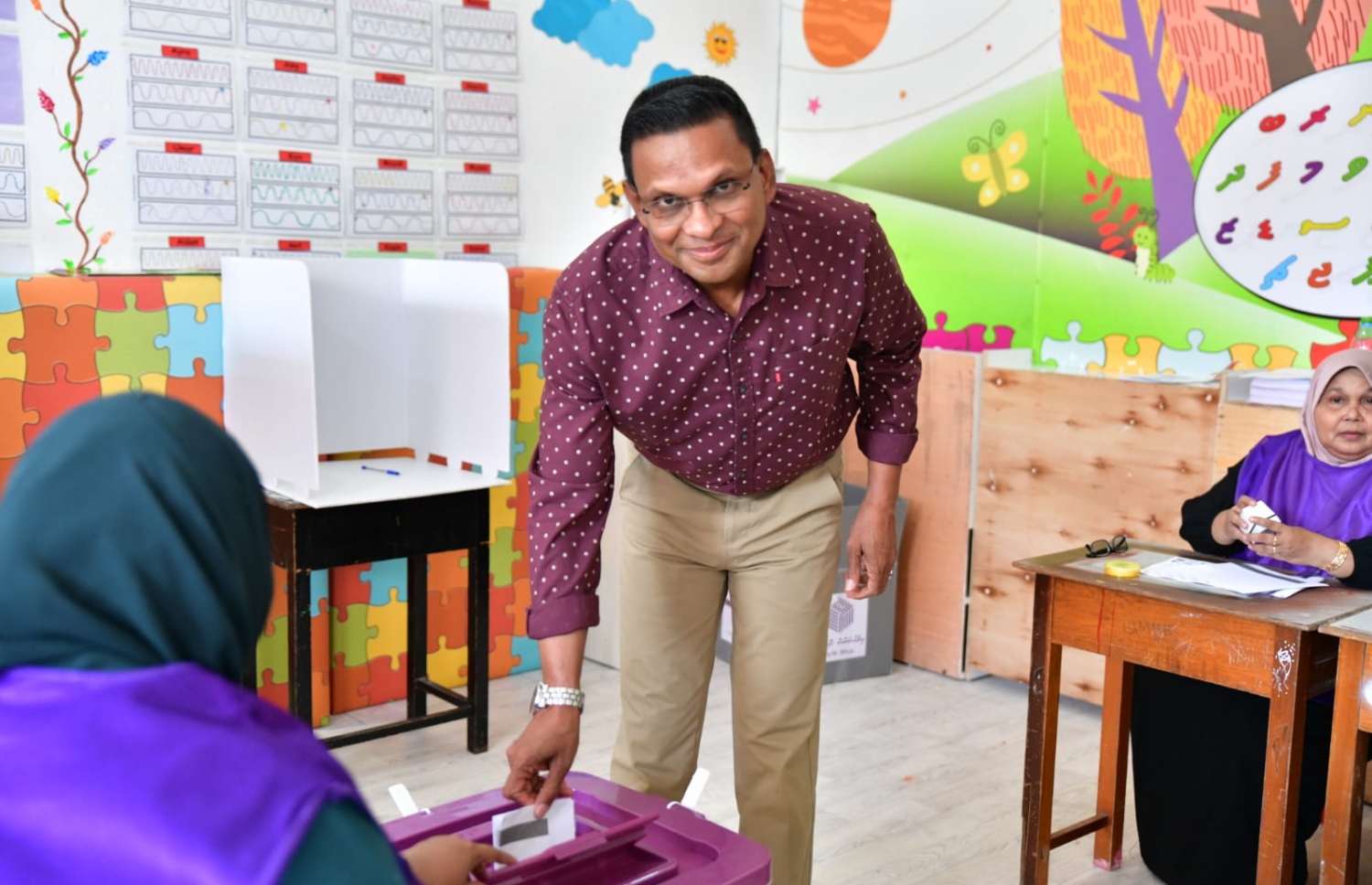 After casting his vote, Dr. Muizzu addressed the media and urged everyone to fulfill their legal duties by voting for the candidate of their choice. He encouraged people not to wait until 4 p.m. and to cast their votes as early as possible.