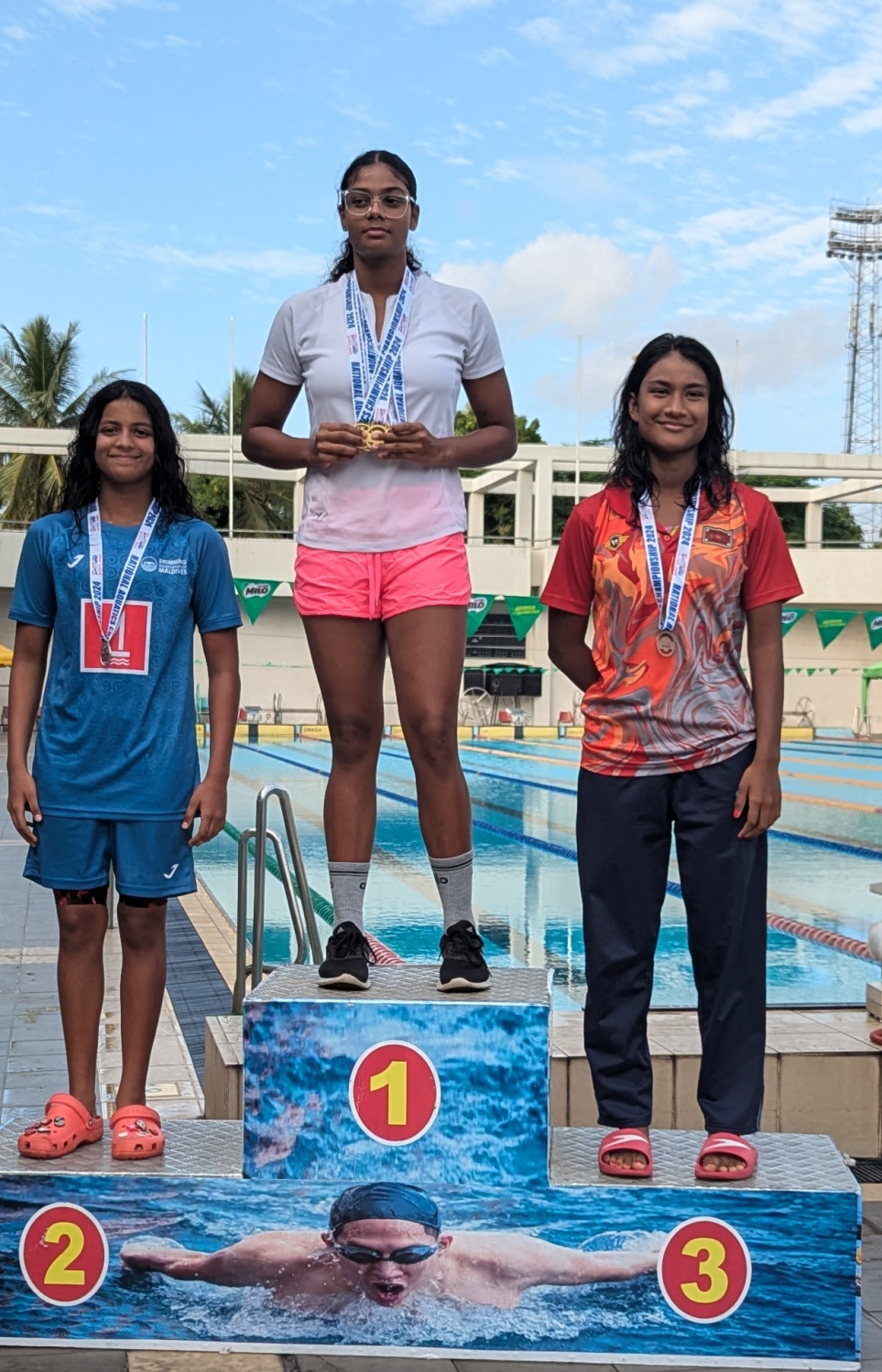 With the silver medal, the most accomplished local athlete competing in this competition, which observed participation from several junior Maldivian swimmers is Tazkiya.