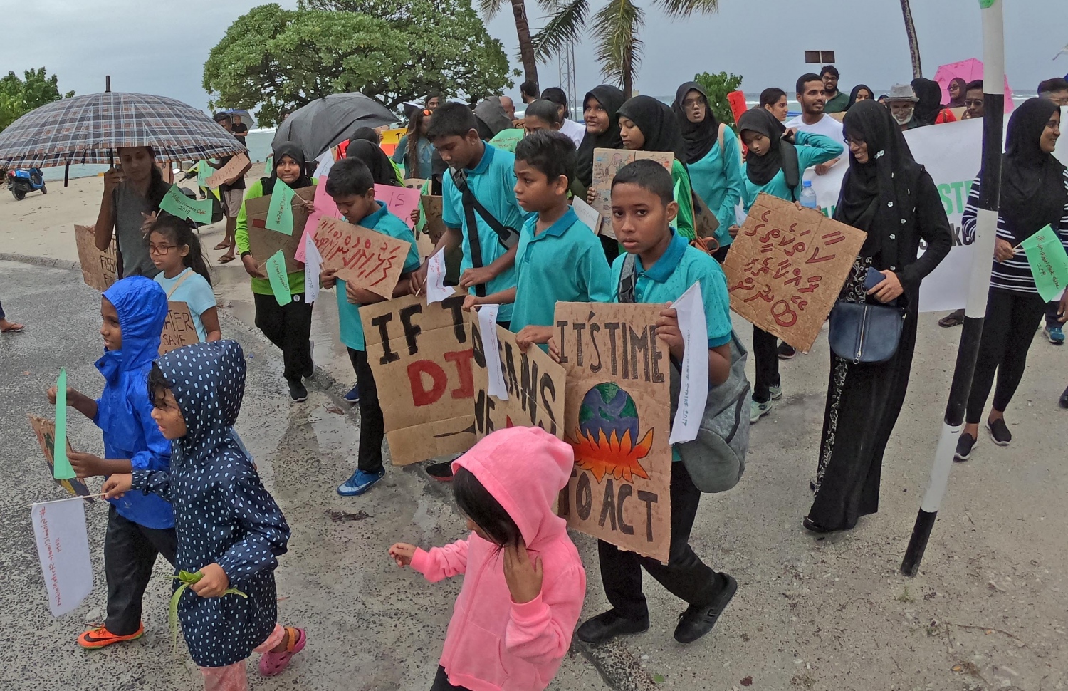 A protest was held at reclaimed suburb Hulhumale on Friday morning, as part of the currently ongoing Global Climate Strike, calling for measures to maintain global temperature rise below 1.5 degrees Celcius.